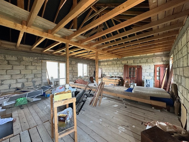 Общая площадь дома 262 кв.м. Дом разделен на две части, одна часть жилая, вторая без отделки. В доме проведены все коммуникации и установлен электро-котел, электричество 380 кВт, 15 кВт.,(3-х фазное), вода - скважина, канализация - выгребная яма.