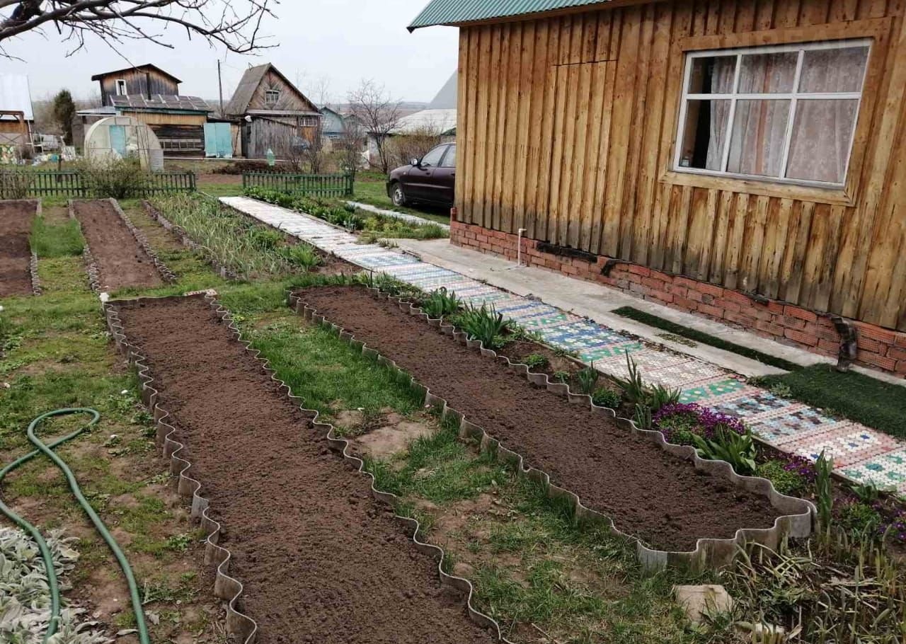 На участке посажены яблони, сливы, виноград, облепиха, крыжовник, смородина(черная, белая, красная). Также посажены цветы: клематисы, хризантемы, пионы, тюльпаны и прочие. 3.3 сотки использовались под посадку картофеля.