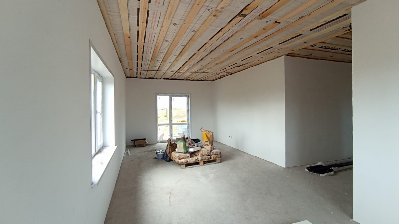 Внутренняя отделка - получистовая: бетонный пол, под финишное покрытие, стены отштукатурены и отшпаклеваны - под оклейку обоями или декоративную штукатурку. Потолки - натяжные, закладные под светильники.