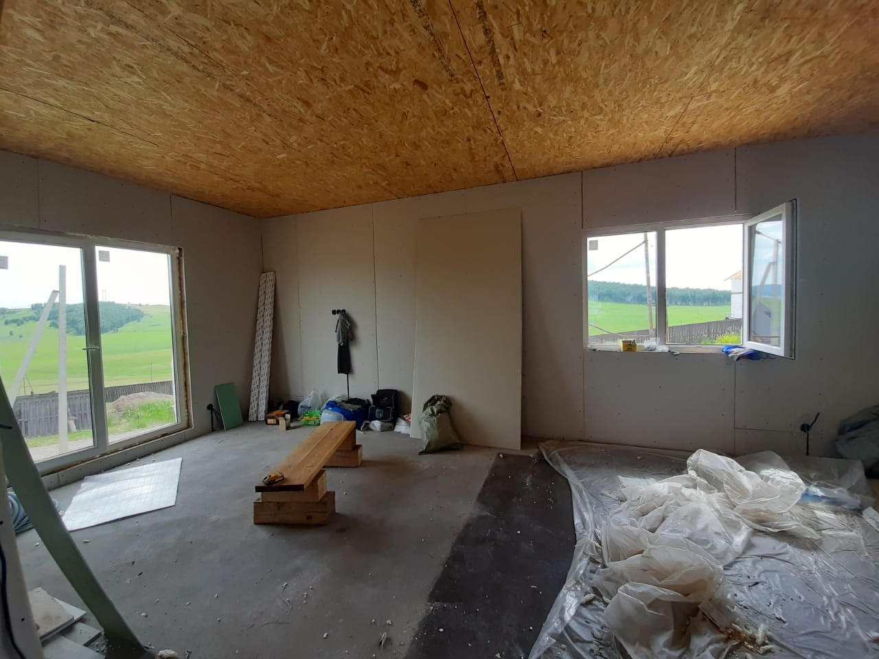 Отделка «Белый куб». В доме окна ПВХ, теплые полы, окно/дверь с выходом на террасу, подведена центральная вода, септик.