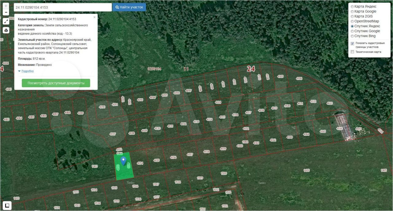 Мой участок расположен между п.Дрокино и п.Солонцы на возвышенности с небольшим уклоном. Местоположение: Красноярский край, Емельяновский район, Солонцовский сельсовет, земельный массив СПК "Солонцы", центральная часть кадастрового квартала 24:11:0290104. Категория земель: земли сельскохозяйственного назначения, разрешенное использование: для ведения дачного хозяйства (код 13.3). Общая площадь земельного участка 812 кв.м. Коммуникации скоро будут. Дорога грунтовая. Проезд как со стороны Дрокино, так и со стороны Солонцов. Есть доступ к электроэнергии, необходимо подать заявку от собственника на получение техусловий в МРСК.  Свежий воздух, много солнца.Точное расположение участка и его характеристики можно посмотреть на публичной кадастровой карте по кадастровому номеру 24:11:0290104:4153