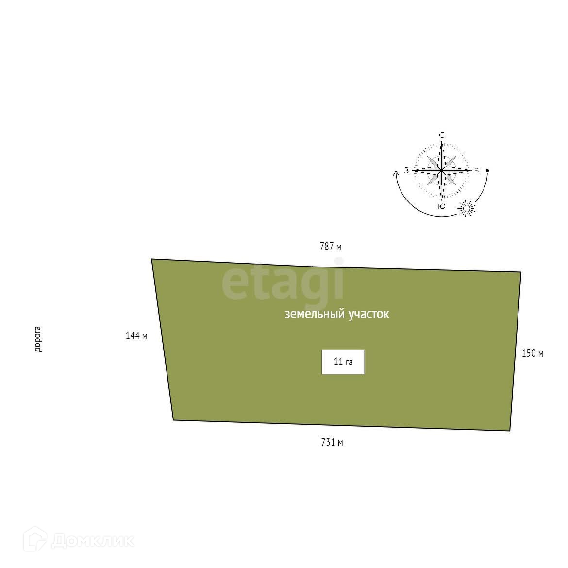 Площадь участка 1100 сот.