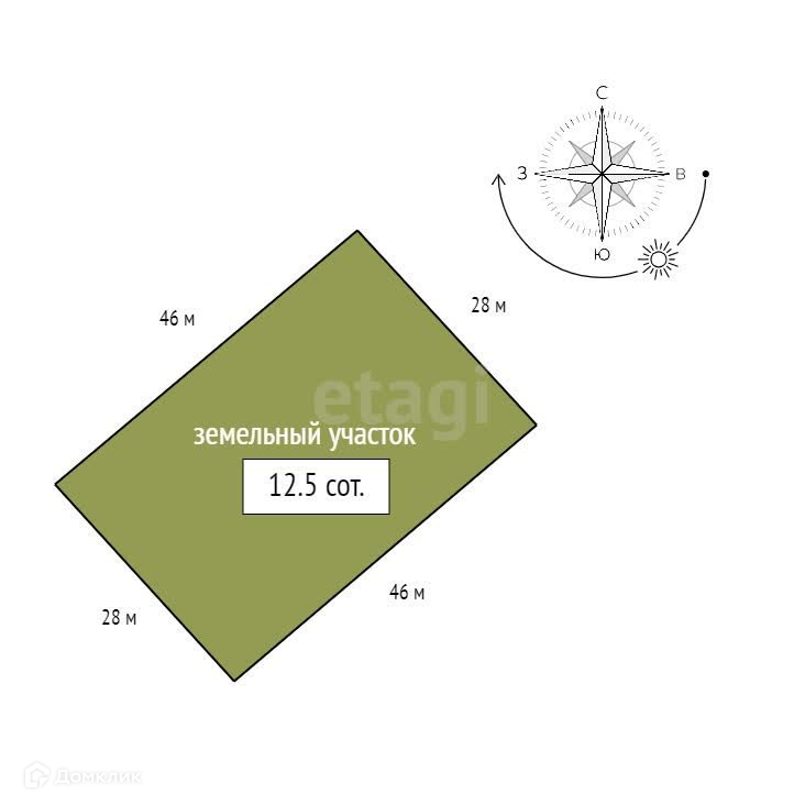 Площадь участка 12.5 сот.