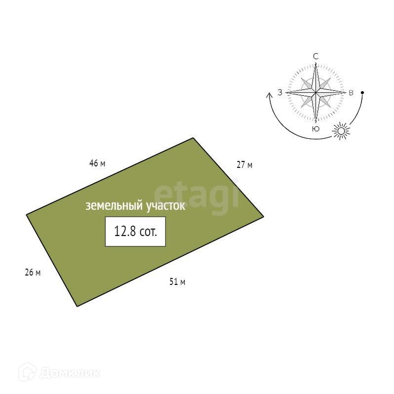 Площадь участка 12.8 сот.
