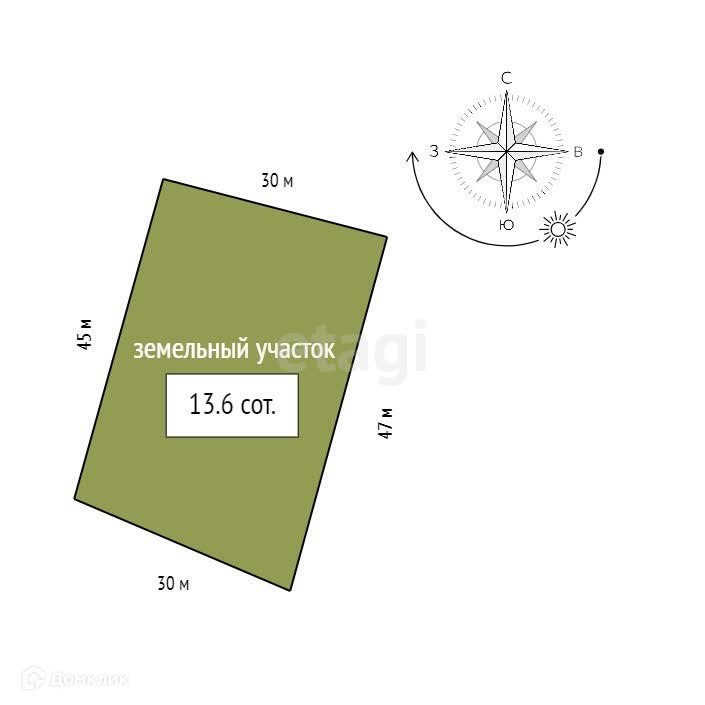 Площадь участка 13.6 сот.