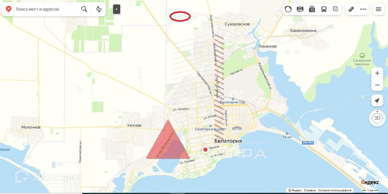 Расстояния  до города Евпатория 5 км до ближайшего песчаного пляжа 6 км