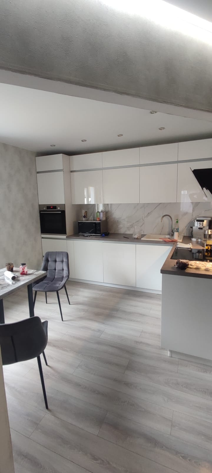 Остается новая кухня со встроенной техникой.