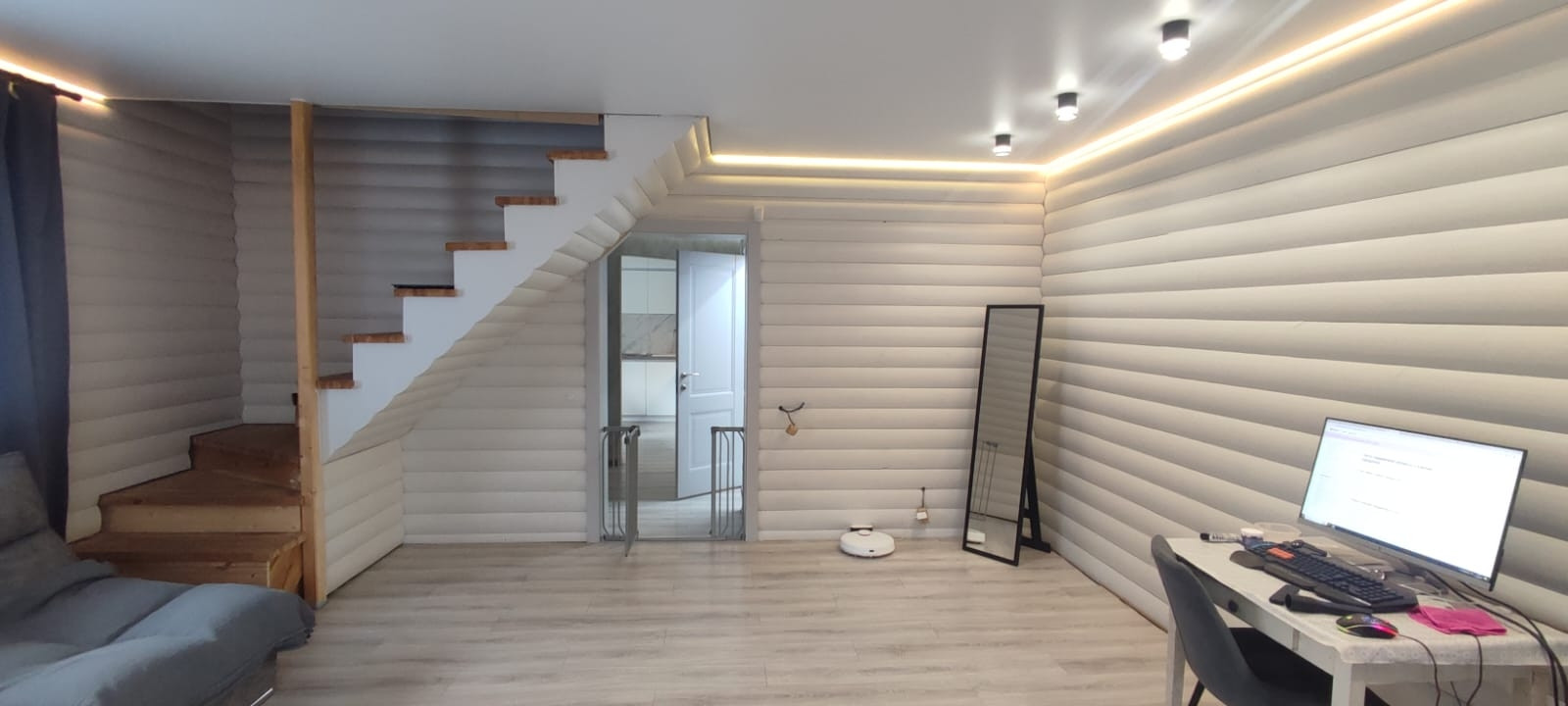 Внутренняя отделка дома-двойной гипсокартон, в зале деревом(блекхаус).
