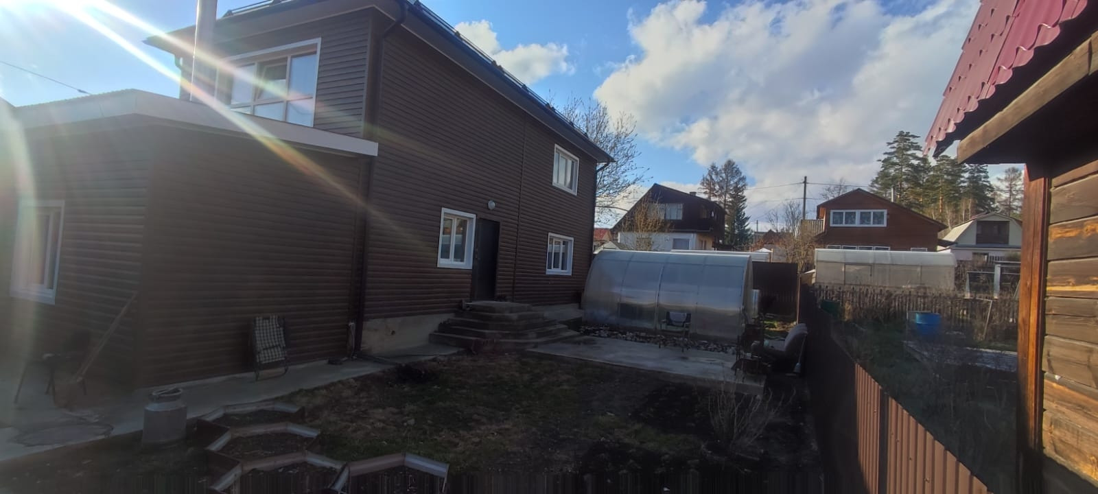 Сам дом утеплён базальтовым волокном и обшит сайдингом (корабельная доска) . Земля и дом в собственности.