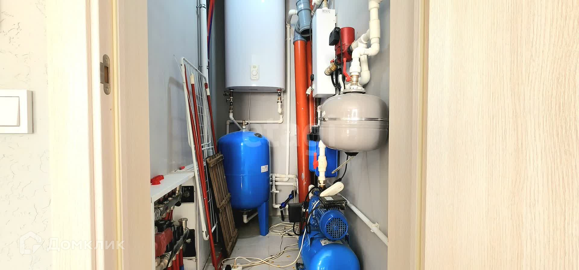 На первом этаже в кухне - гостиной полы с подогревом и плитка KERAMA MARAZZI, в комнатах полы ламинат, стены гипсовая штукатурка под покраску, в гостиной потолки натяжные, так же на данном этаже кладовая, санузел и сантехническое помещение. Установлен Водонагреватель накопительный Zanussi с баком на 100 литров, мощностью 2квт и температурой нагревания от 30 до 75 °С. Насос циркуляционный, пропускная способность 2.88 куб.м/час, Инженерная сантехника TIM, Расширительный бак, гидроаккумулятор 100 л. Вертикальный. Гидроаккумулятор Zilmet с фланцем из Технопрена - рабочая температура -10 °С +99 °C; максимальное рабочее давление 10 бар, трубы Rehau полипропилен с армированным стекловолокном 16 и 20 мм.