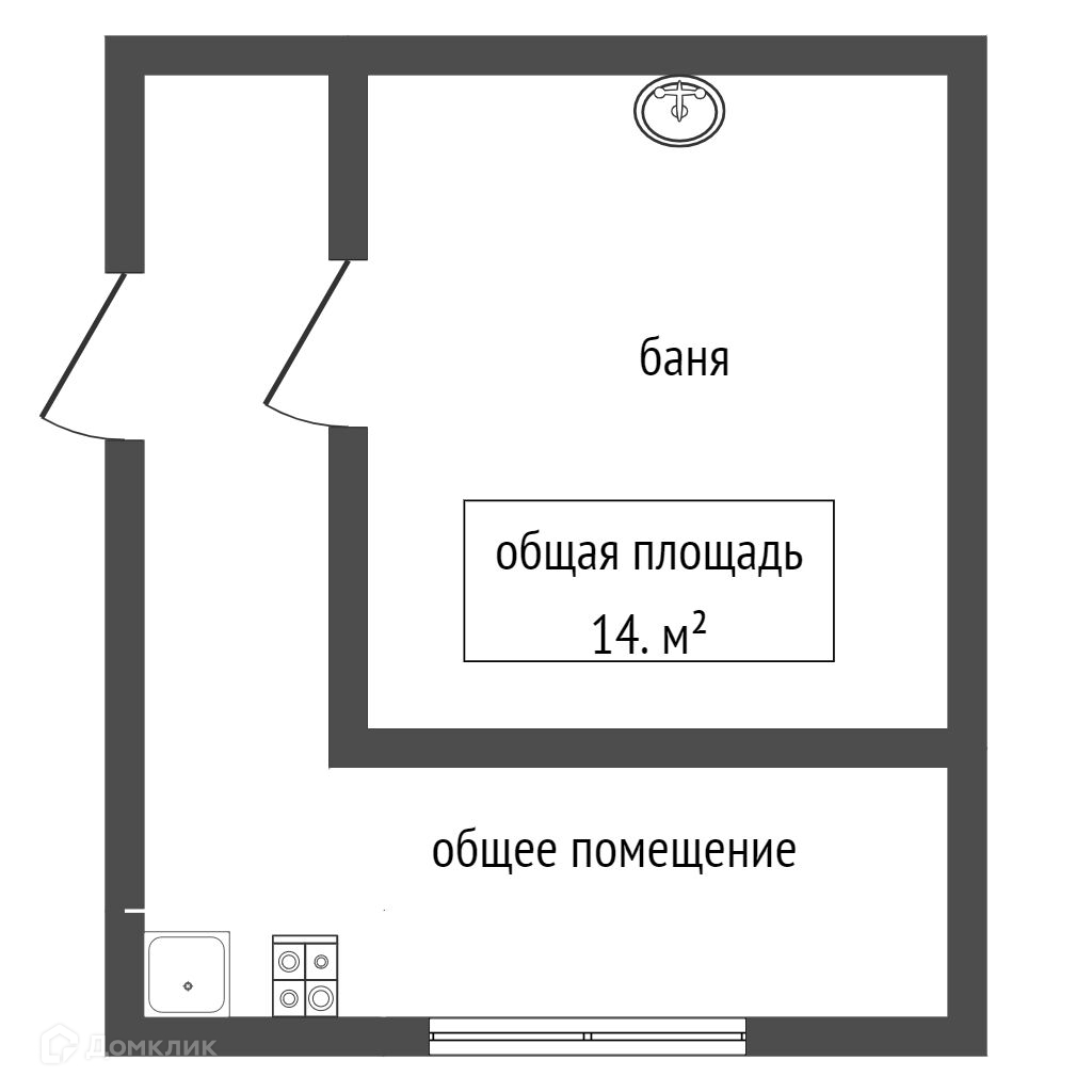 -Отдельное помещение, где установлена печка с емкостью для нагрева воды, а пол выполнен с уклоном и сливом.