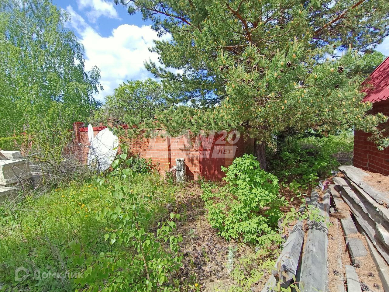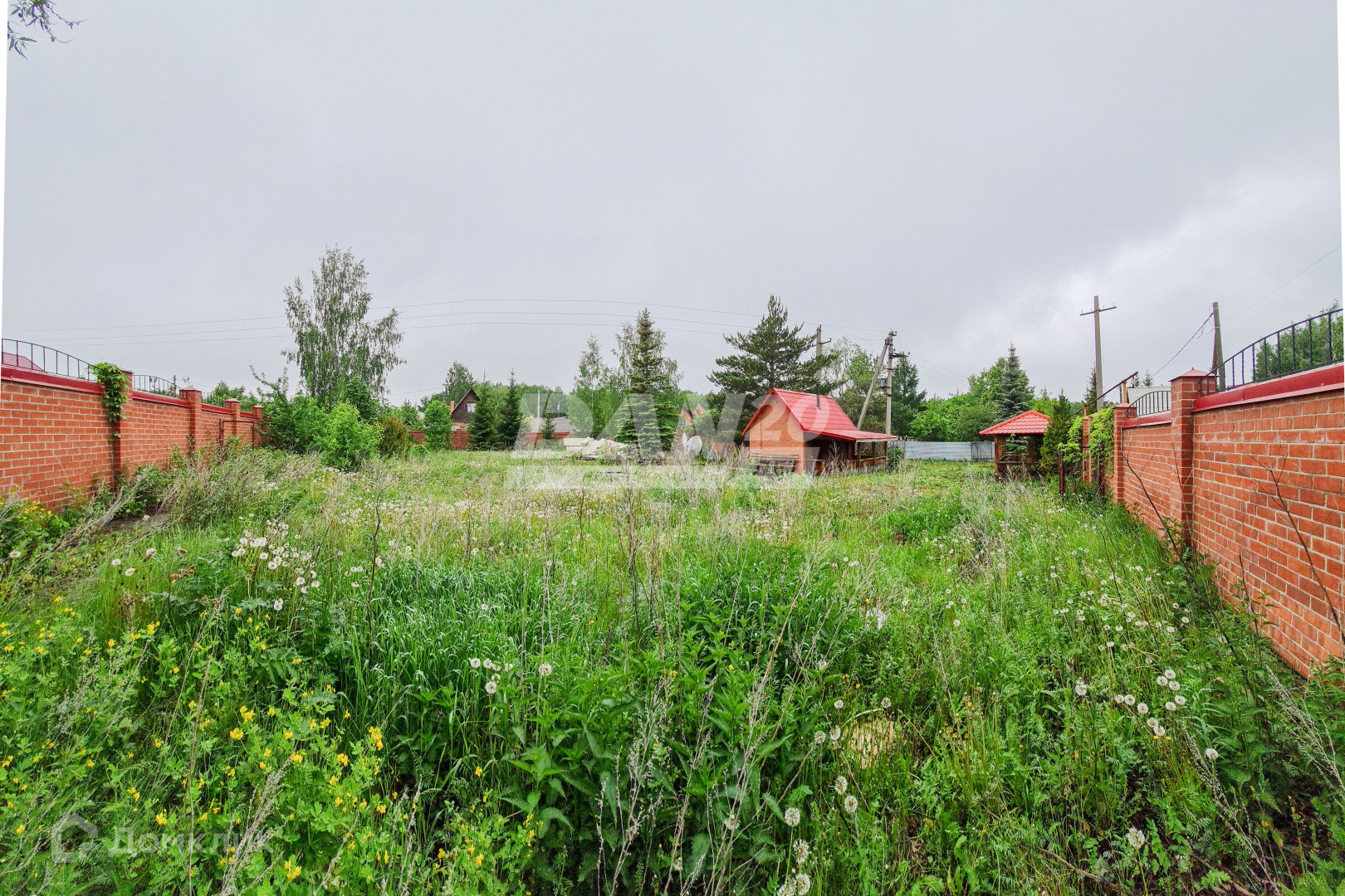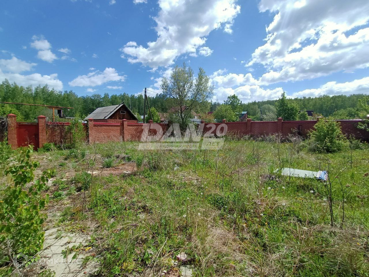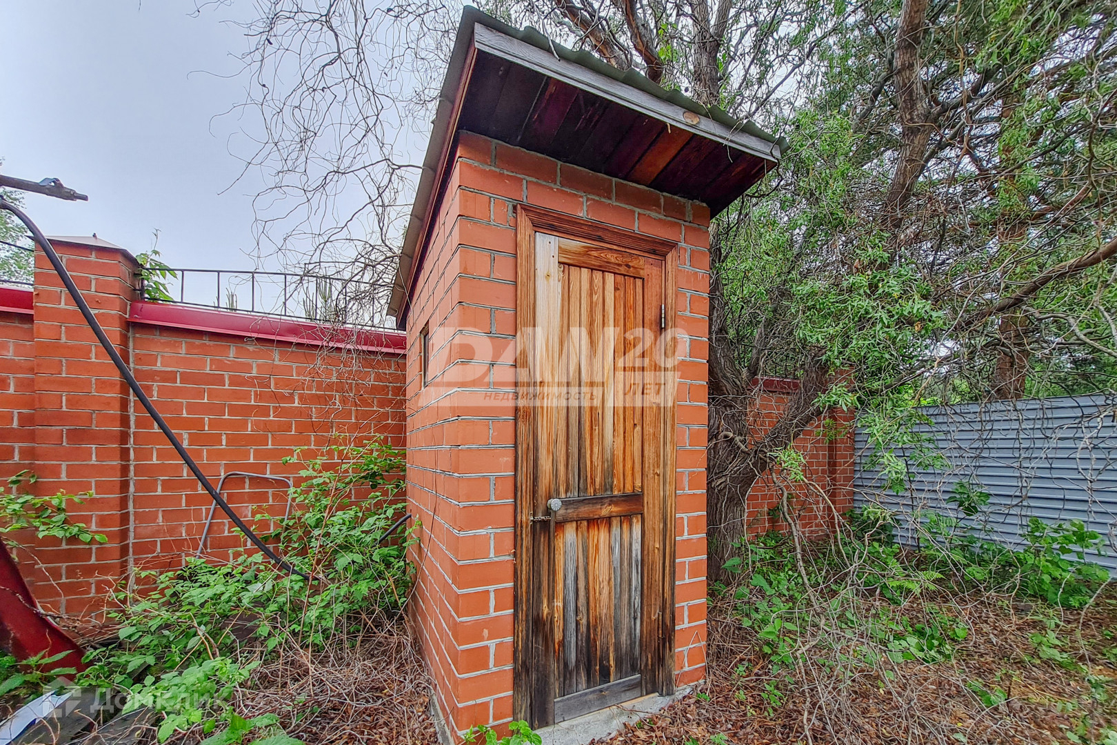 Участок огорожен по всему периметру качественно сложенным кирпичным забором с декорированным защитным коньком.