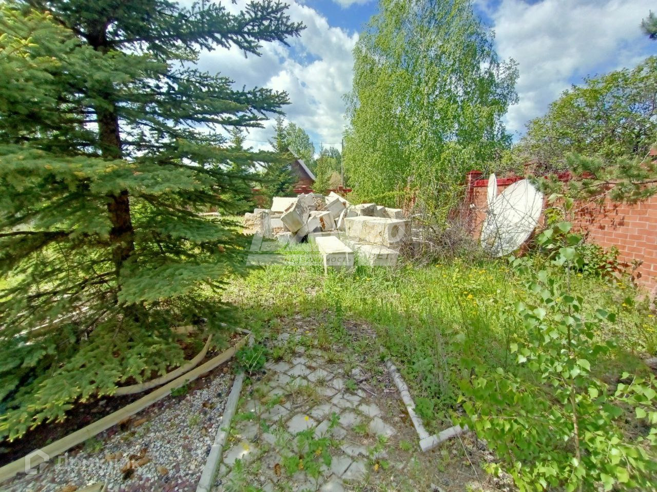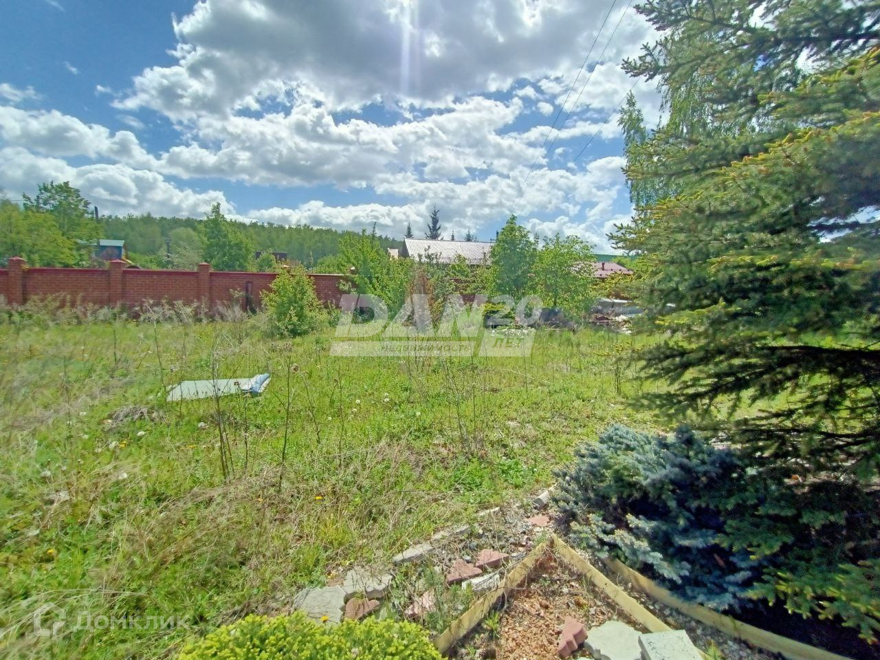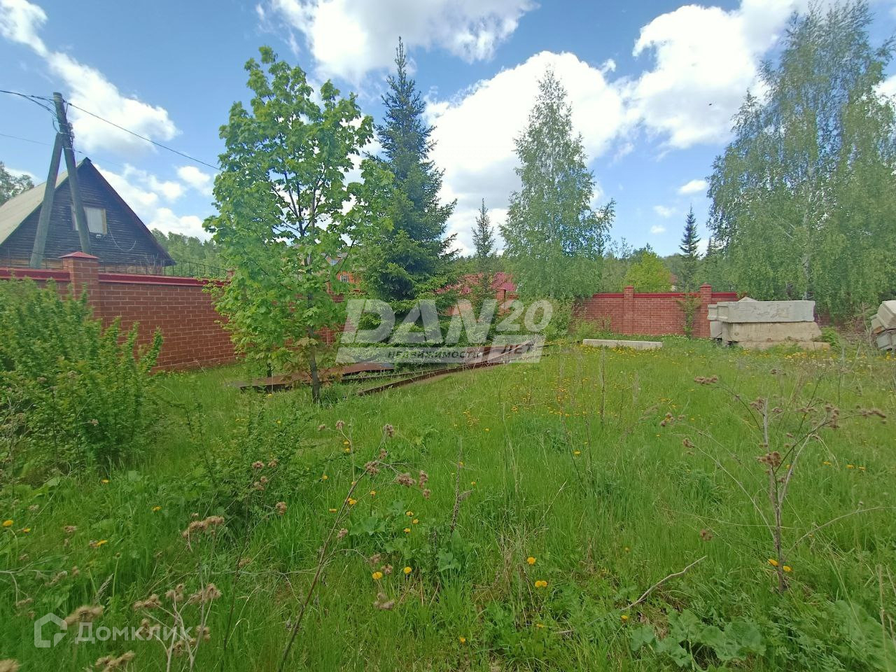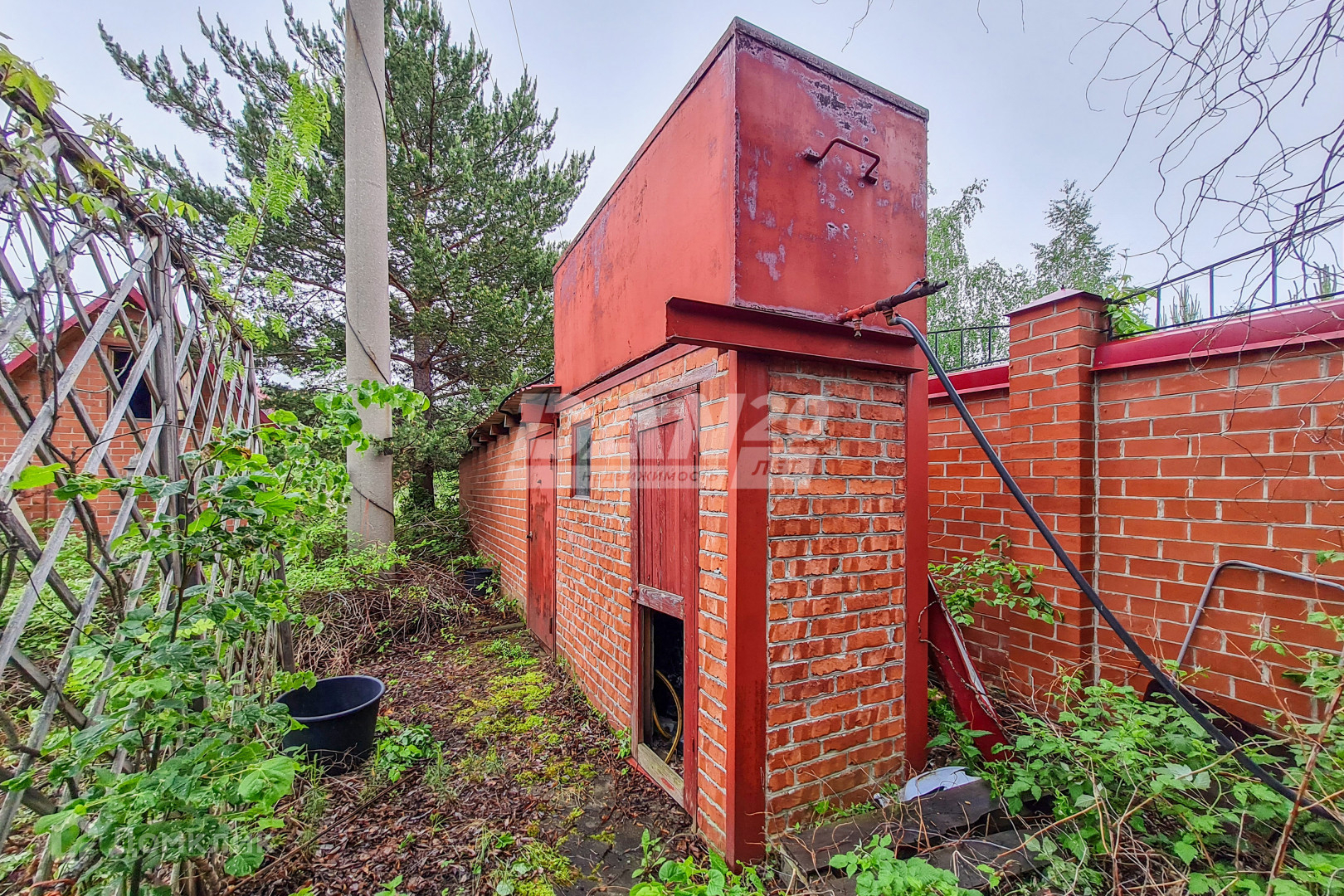 Участок огорожен по всему периметру качественно сложенным кирпичным забором с декорированным защитным коньком.