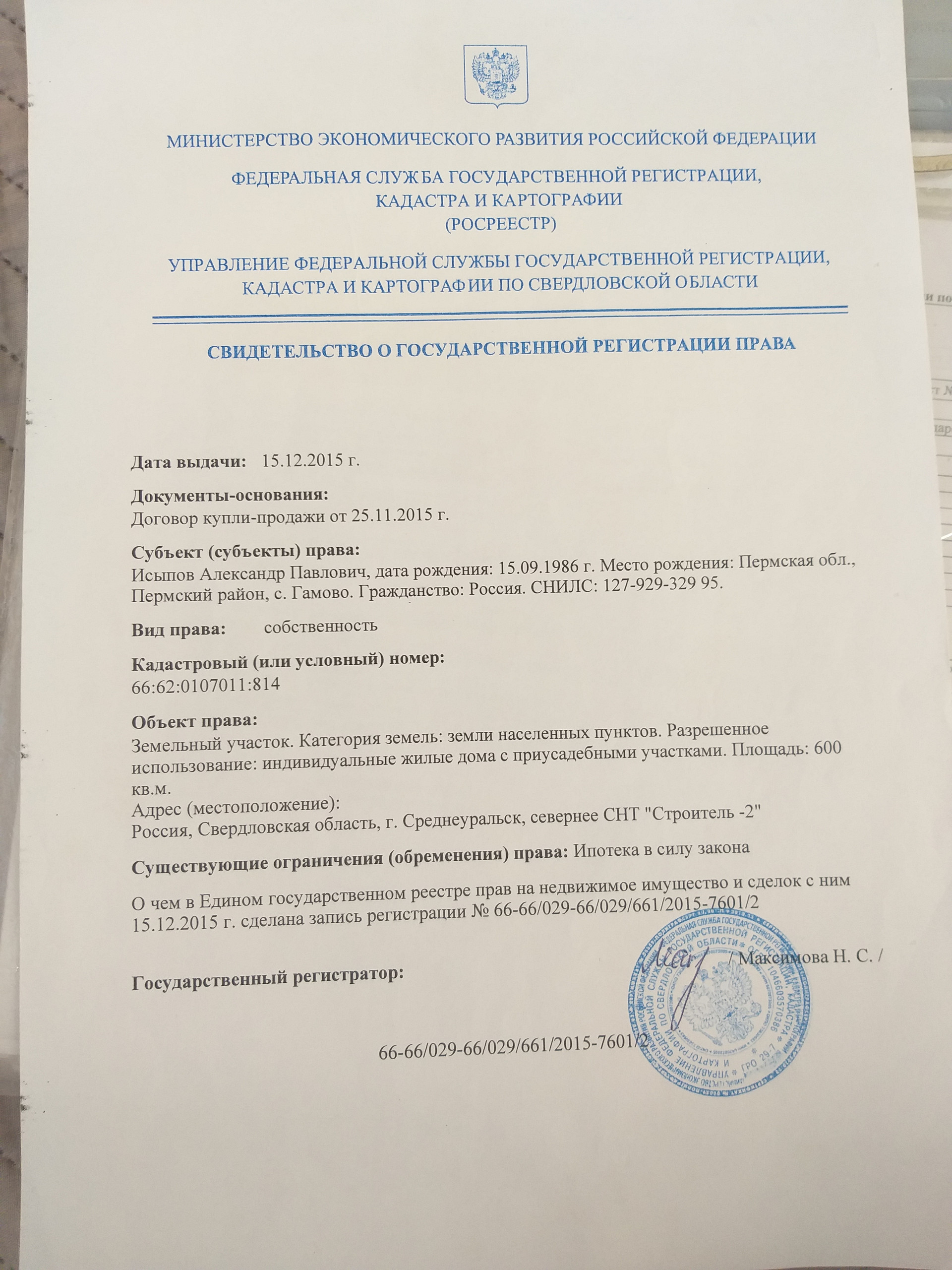 Назначение земли ИЖС