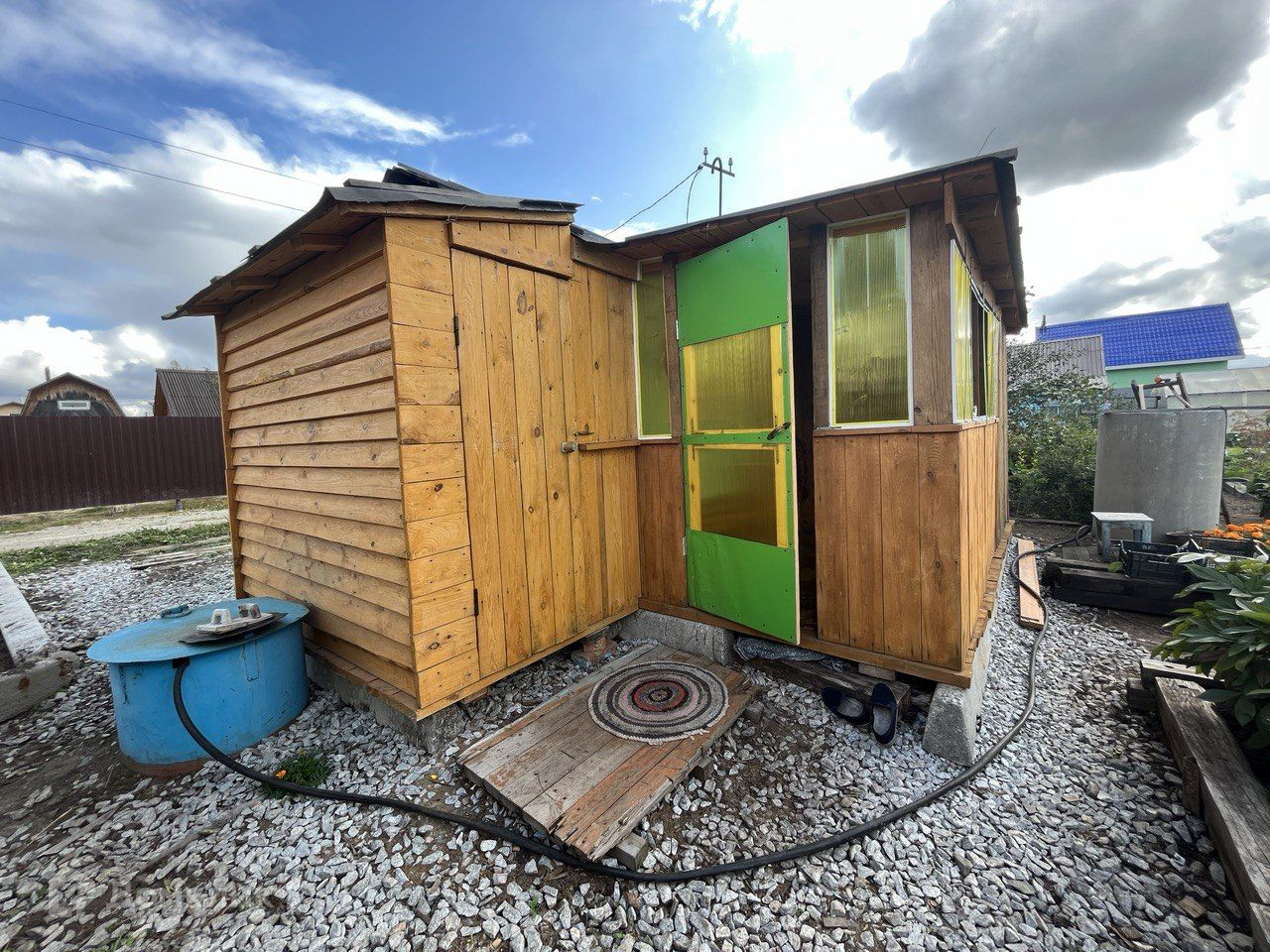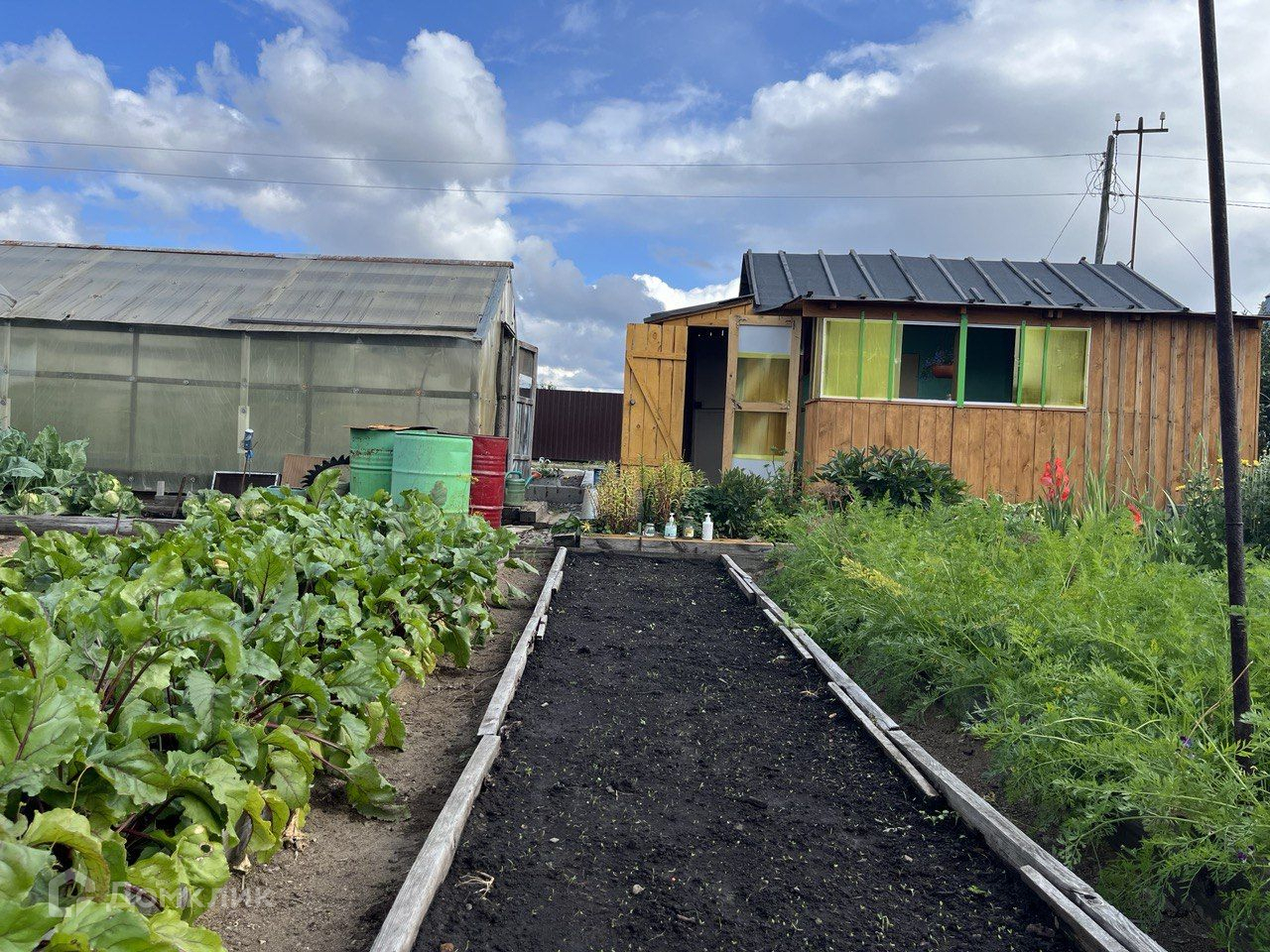 На участке две теплицы, своя скважина, электричество подведено.