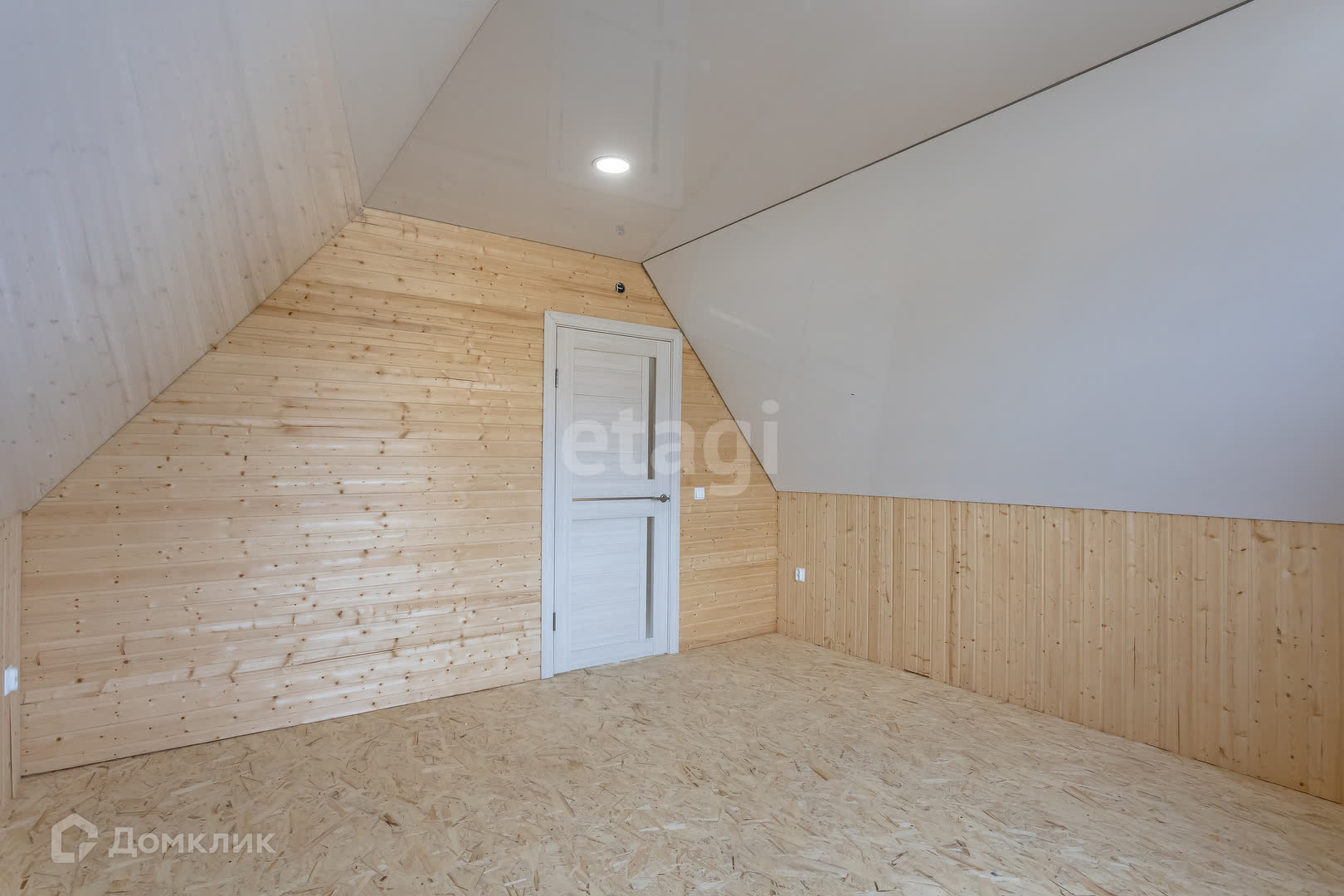 В доме внутри отделка вагонкой,второй этаж мансардный, на нем расположены две спальни, на первом этаже- большая гостиная. Санузел смежный,оборудован ванной, унитазом и раковиной.