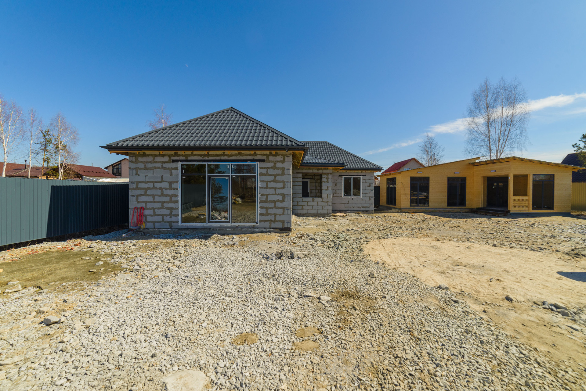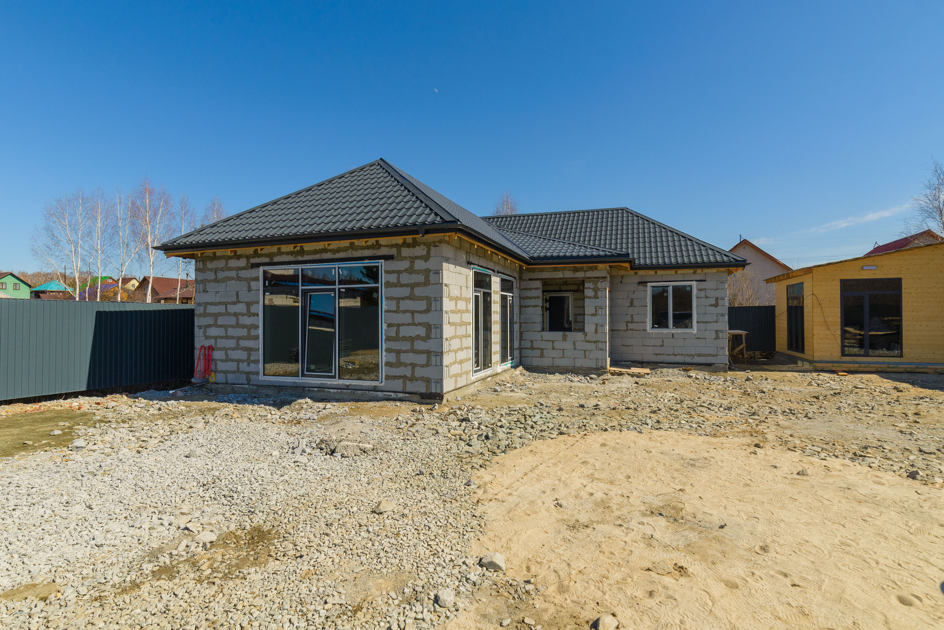 Дом из твинблока, общая площадь 114.2 кв.м . Фундамент: плита.Крыша: профлист, утеплитель мин.вата 250. Окна: панорамные алюминиевые. Теплый пол электро-водяной, работает без котла, деловая стяжка. Электрика с греющими кабелями. Скважина 33 метра, Канализация: по дому разведена, Септик СК Урал и кессон куплен, но не смонтирован.