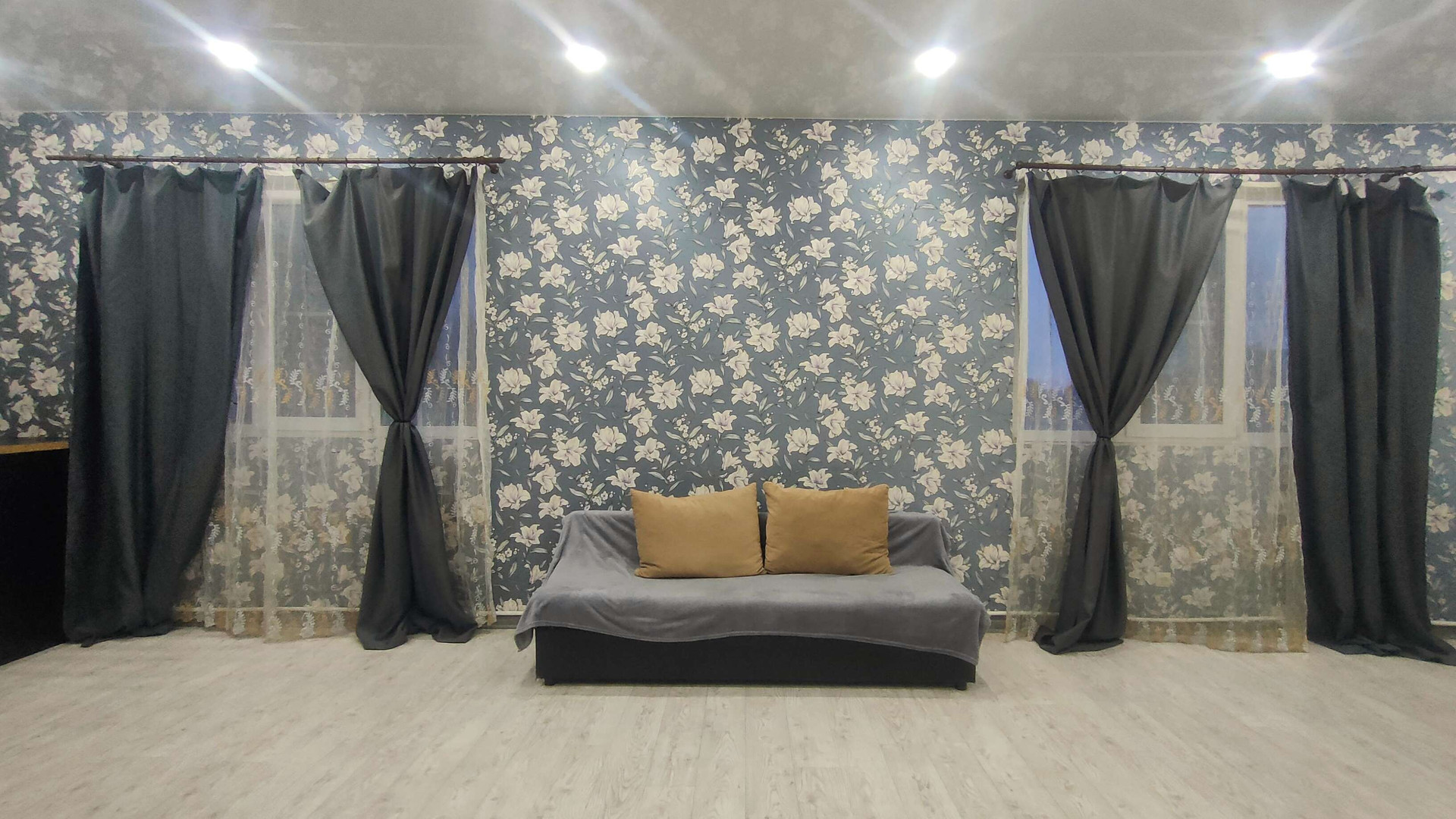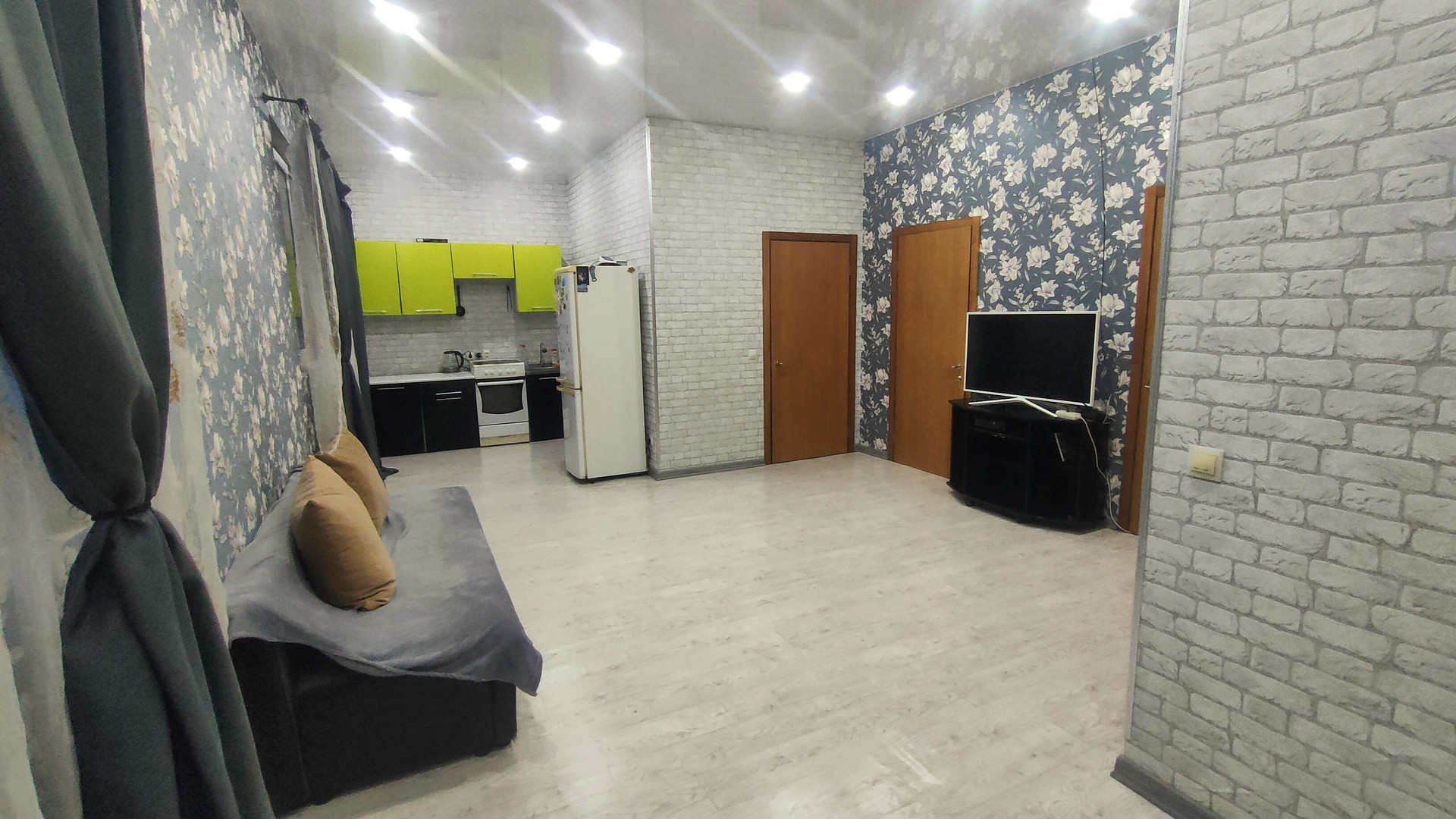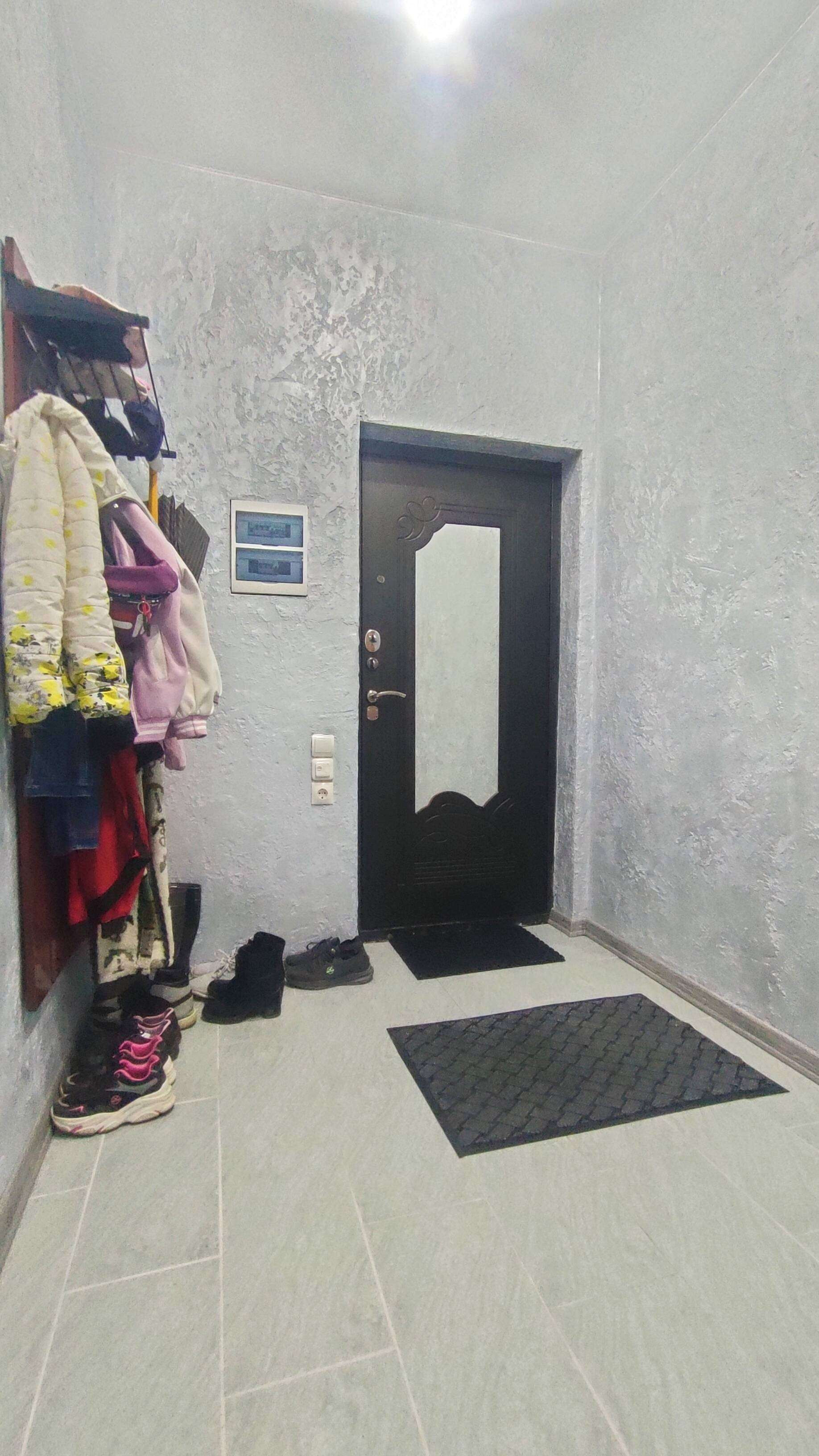 На первом этаже две спальни и кухня-гостинная, полностью законченный ремонт. Второй этаж площадью 50 кв.м. под черновую отделку, проводка заведена. Теплые полы в прихожей и ванной комнате. Остаётся вся мебель.