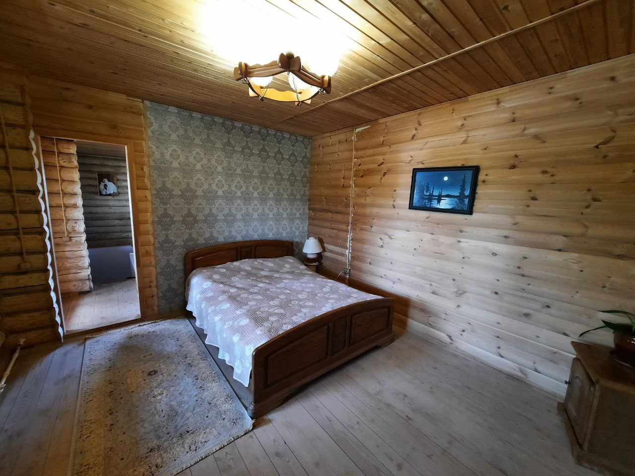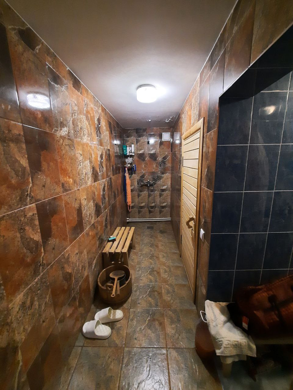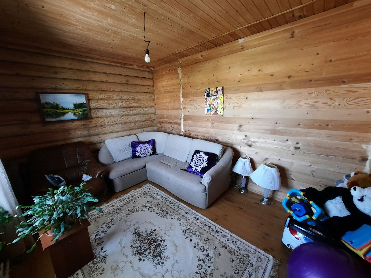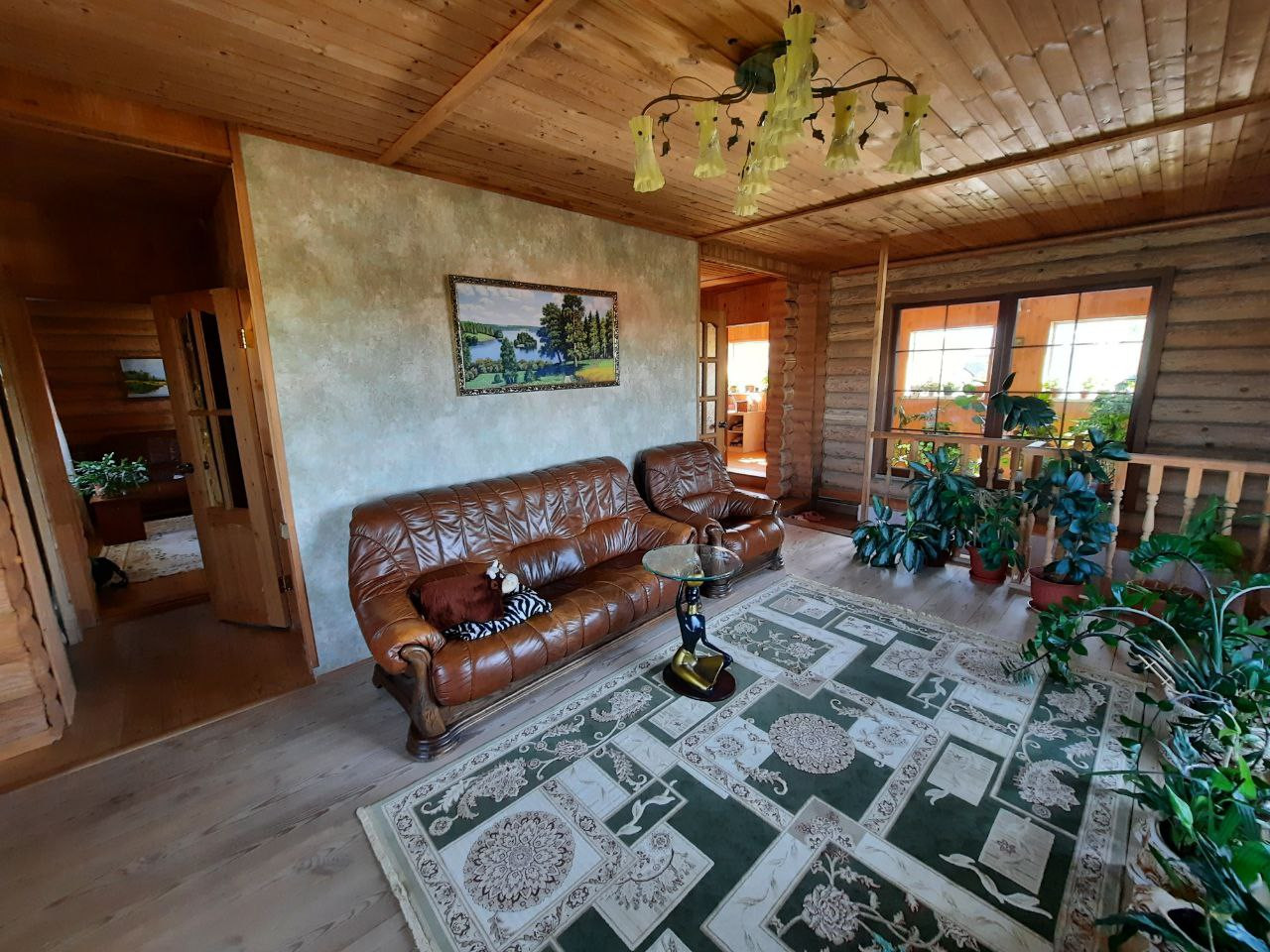 На 1 этаже кухня-гостиная, сауна, санузел.