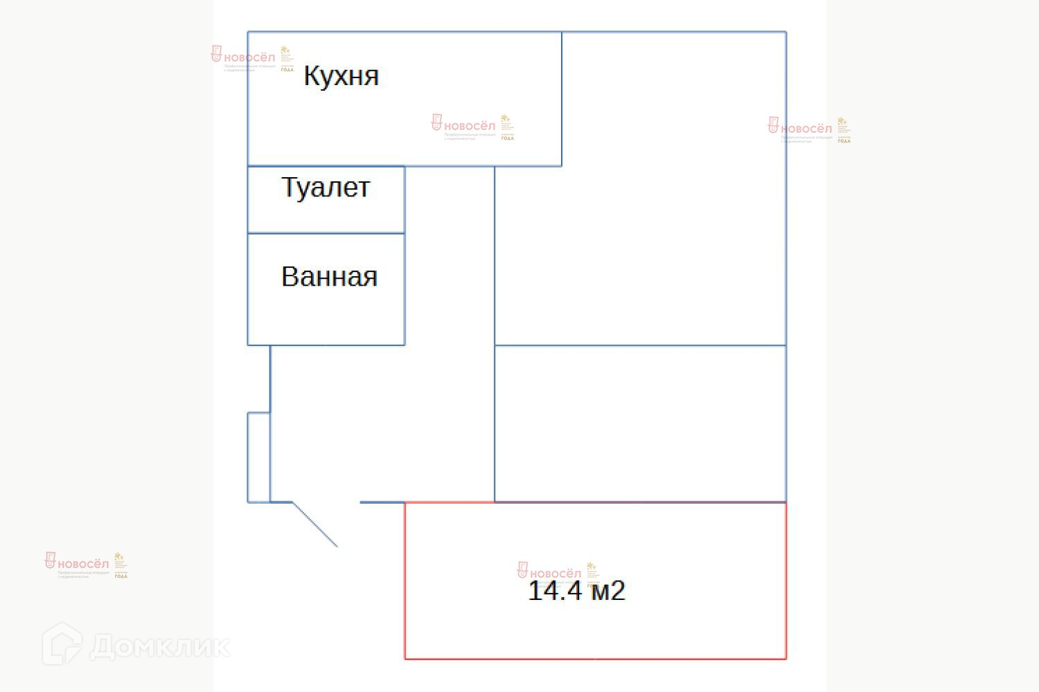 Жилая площадь 14.4 м2