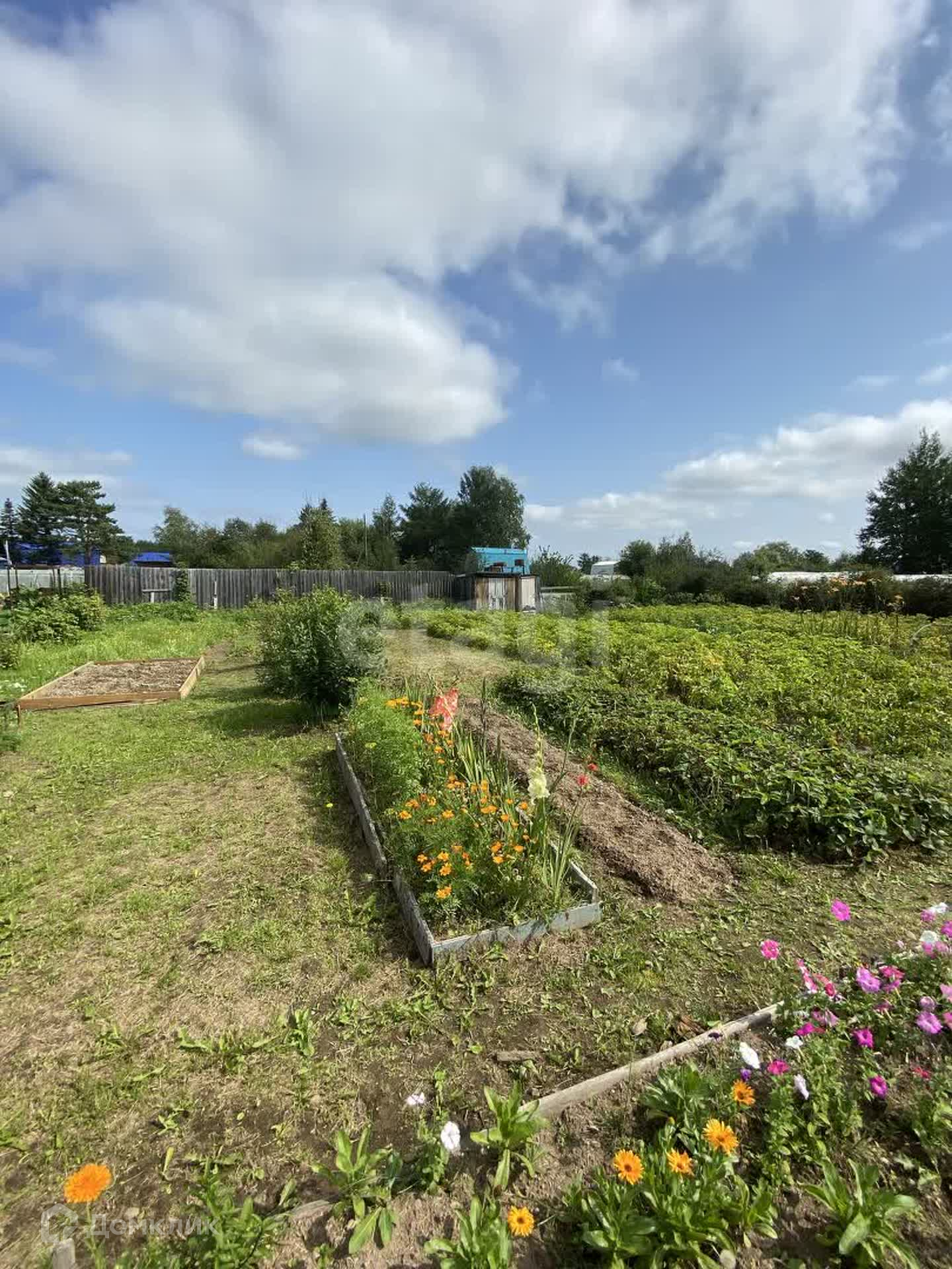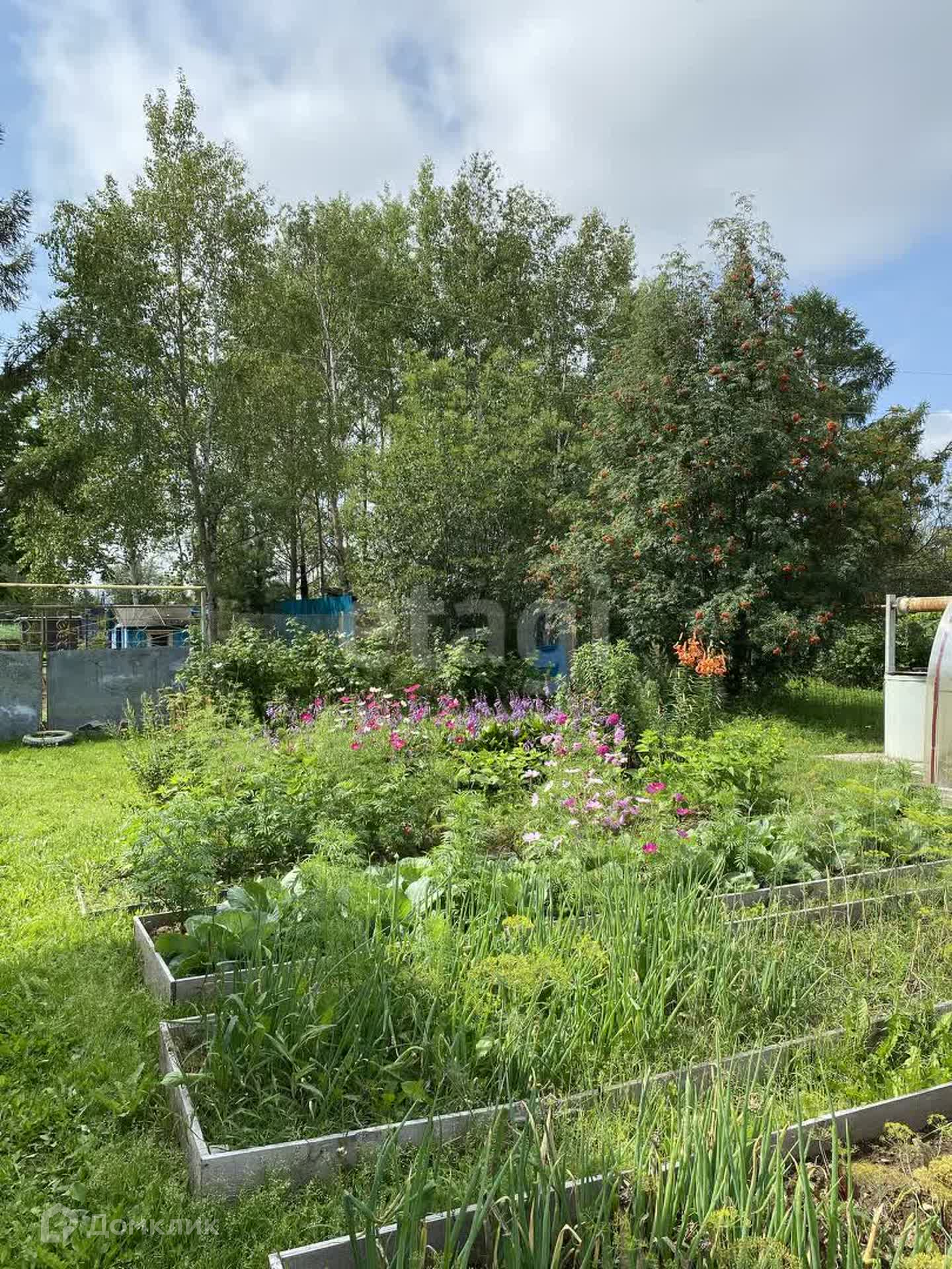 Есть посадки плодово-ягодных культур: виноград, клубника, рябина, смородина, малина, вишня, жимолость и многое другое, так же участок украшает куст багульника.