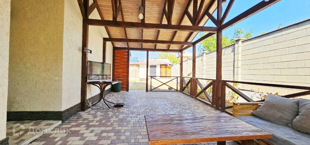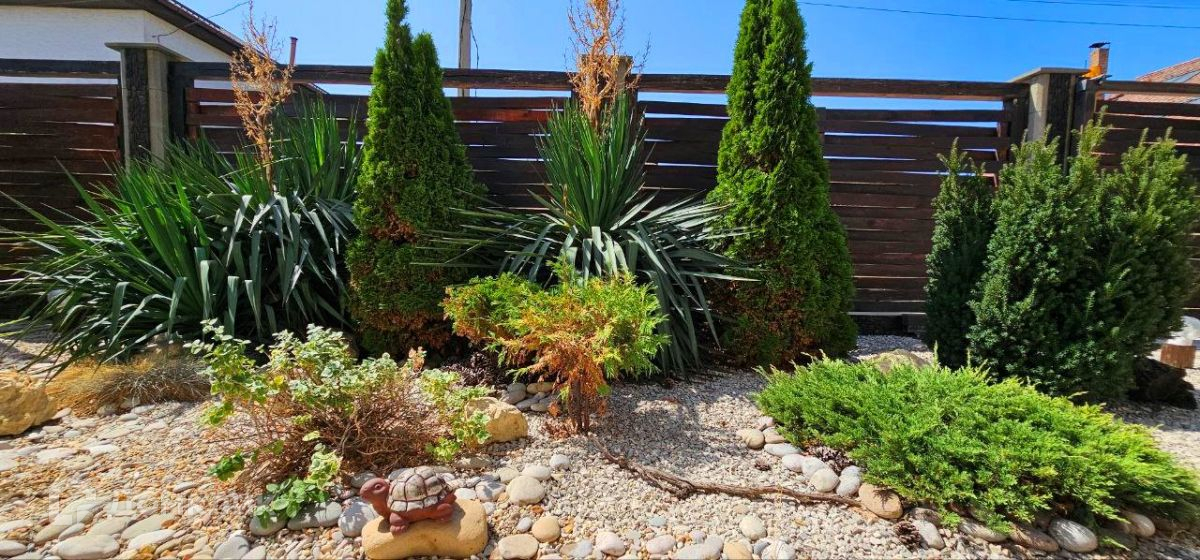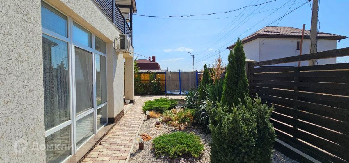 Территория огорожена забором из французского камня, лицевая сторона из декоративного дерева с откатными воротами на пульте. К дому пристроена большая беседка для отдыxа с семьёй и друзьями. Установлен детский батут, на участке есть два xоз помещения, одно для xранения инвертаря, второе для накопительной ёмкости со скважины. Выполнено благоустройство участка. Есть плодовые деревья в саду.