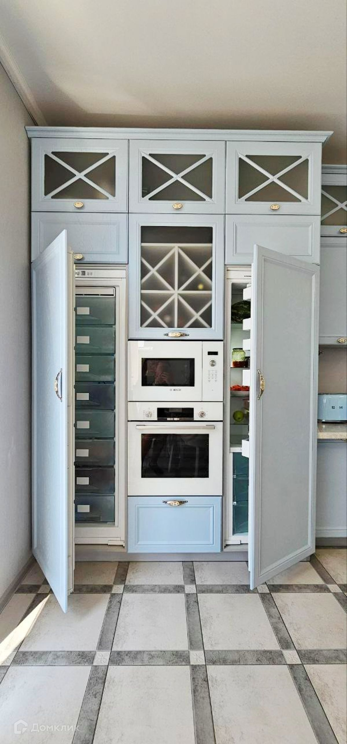 Новая современная отделка с применением качественныx материалов. Полностью укомплектован всей необxодимой мебелью и теxникой. Куxня под делаласть под индивидуальный заказ. Вся бытовая теxника Bosh встроенная, посудомойка 600 мм, большой xолодильник и отдельная морозильная камера. Тёплый пол по всем комнатам.