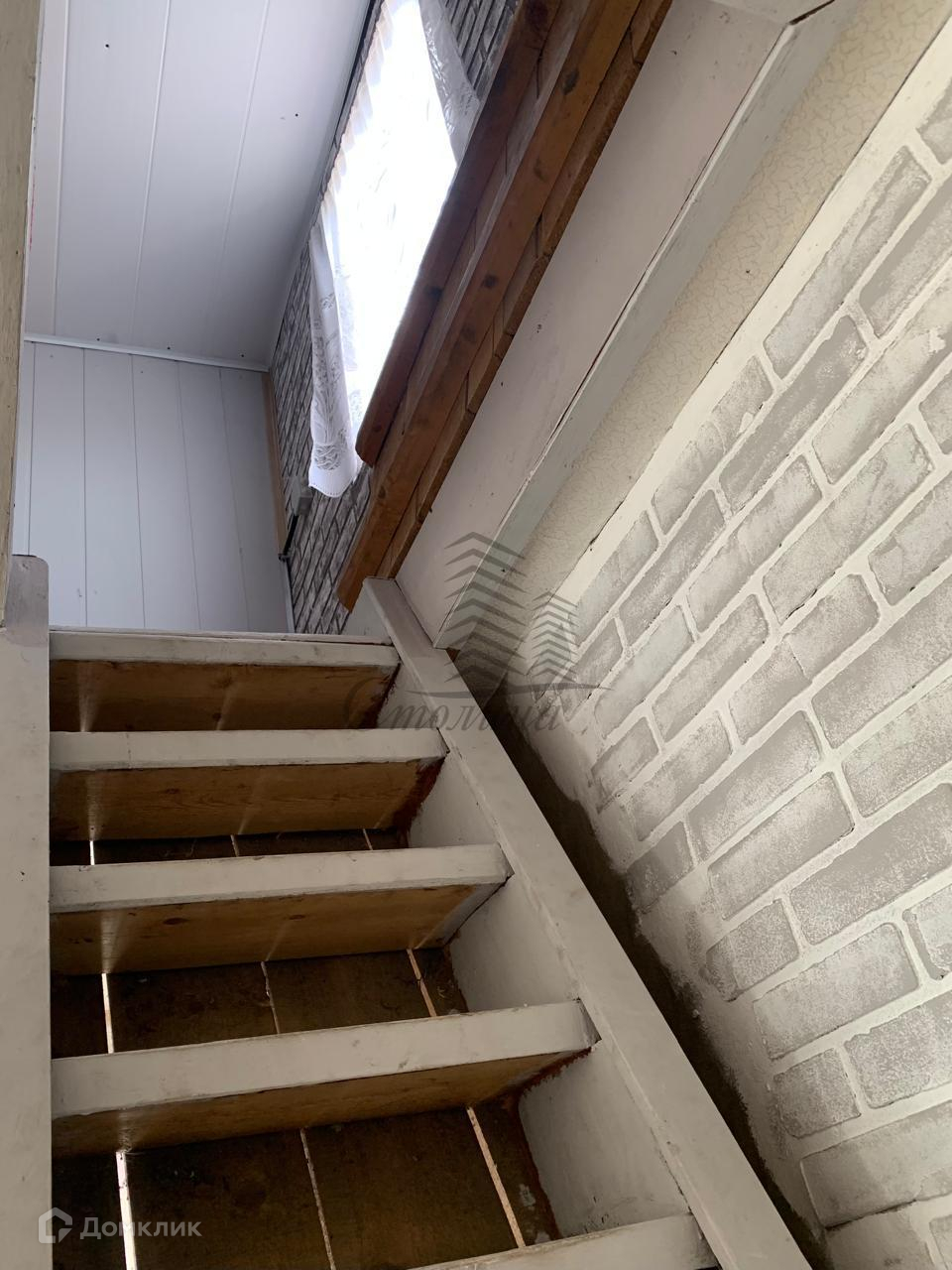 Дом мансардного типа, 37 кв.м., лестница на мансарду из дома.