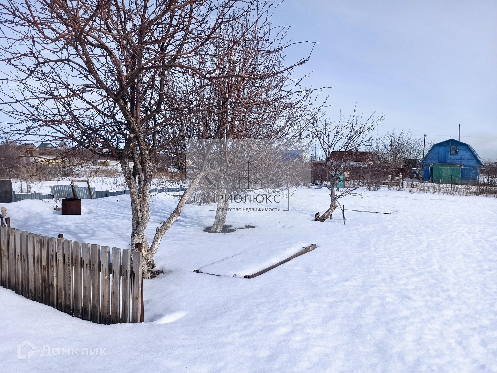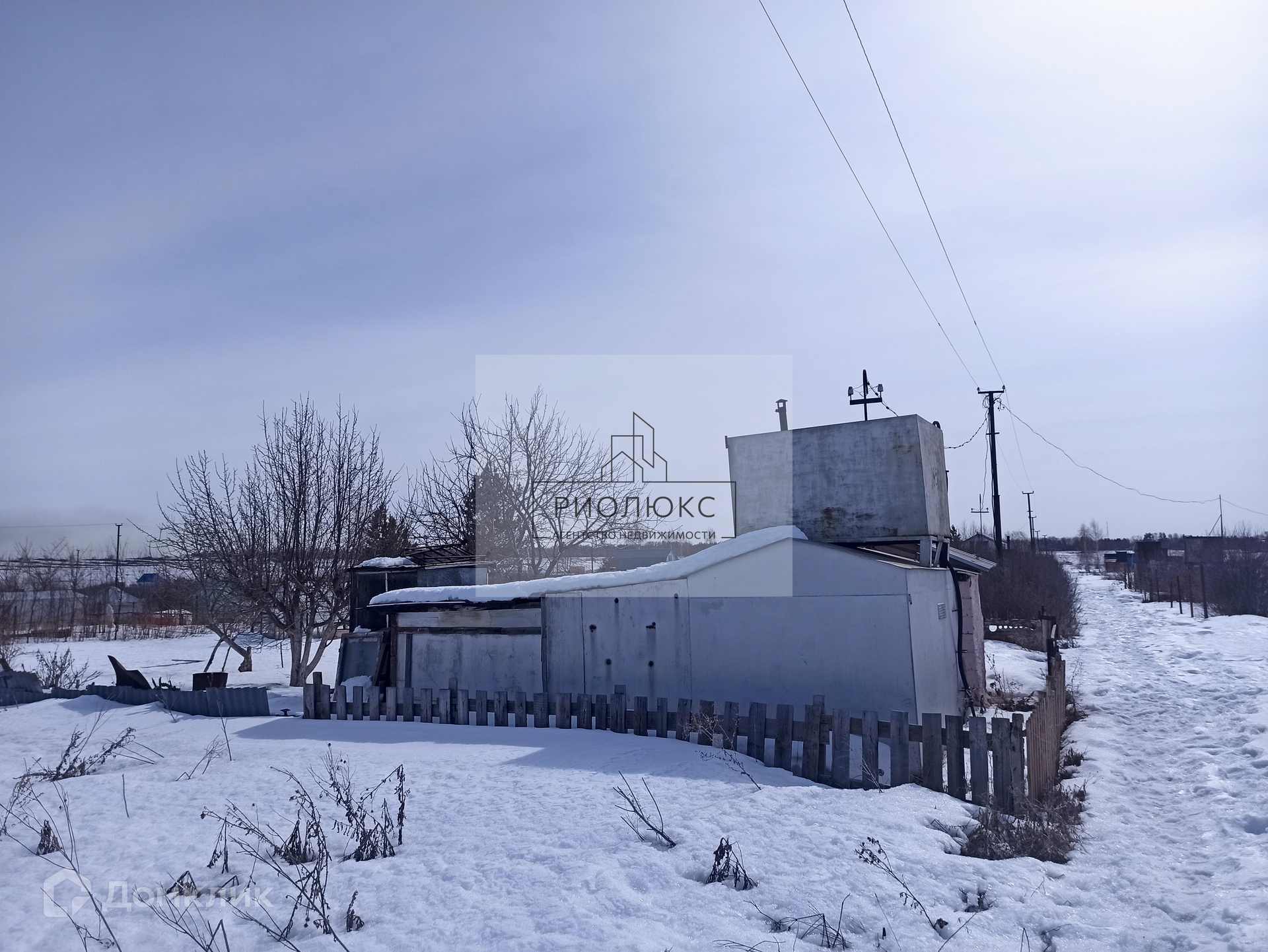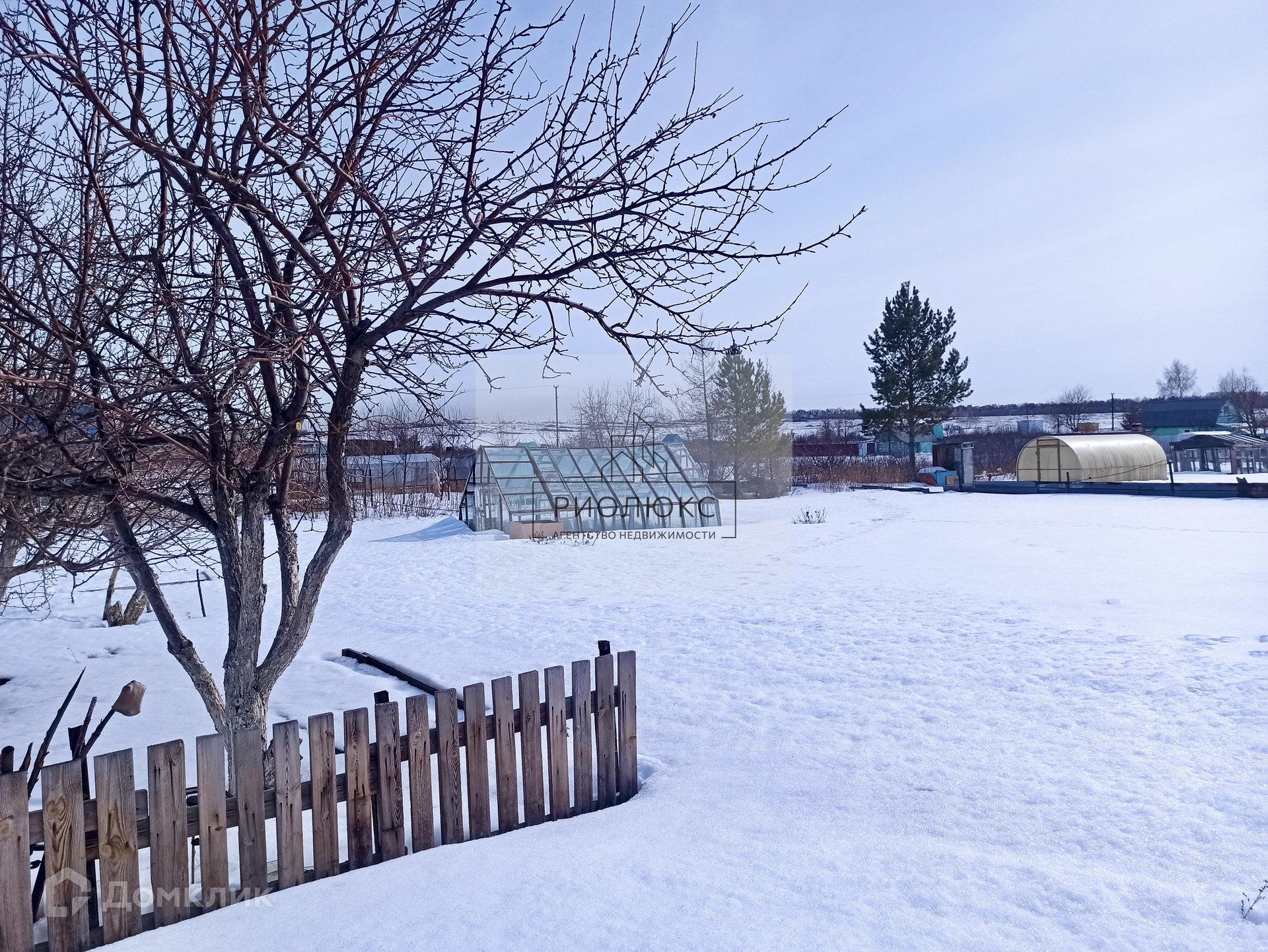На участке расположены: небольшой домик с буржуйкой, хоз. блок, дровница, теплица, многочисленные плодоносящие посадки (яблони, груша, клубника, крыжовник, смородина, малина), бак для полива.