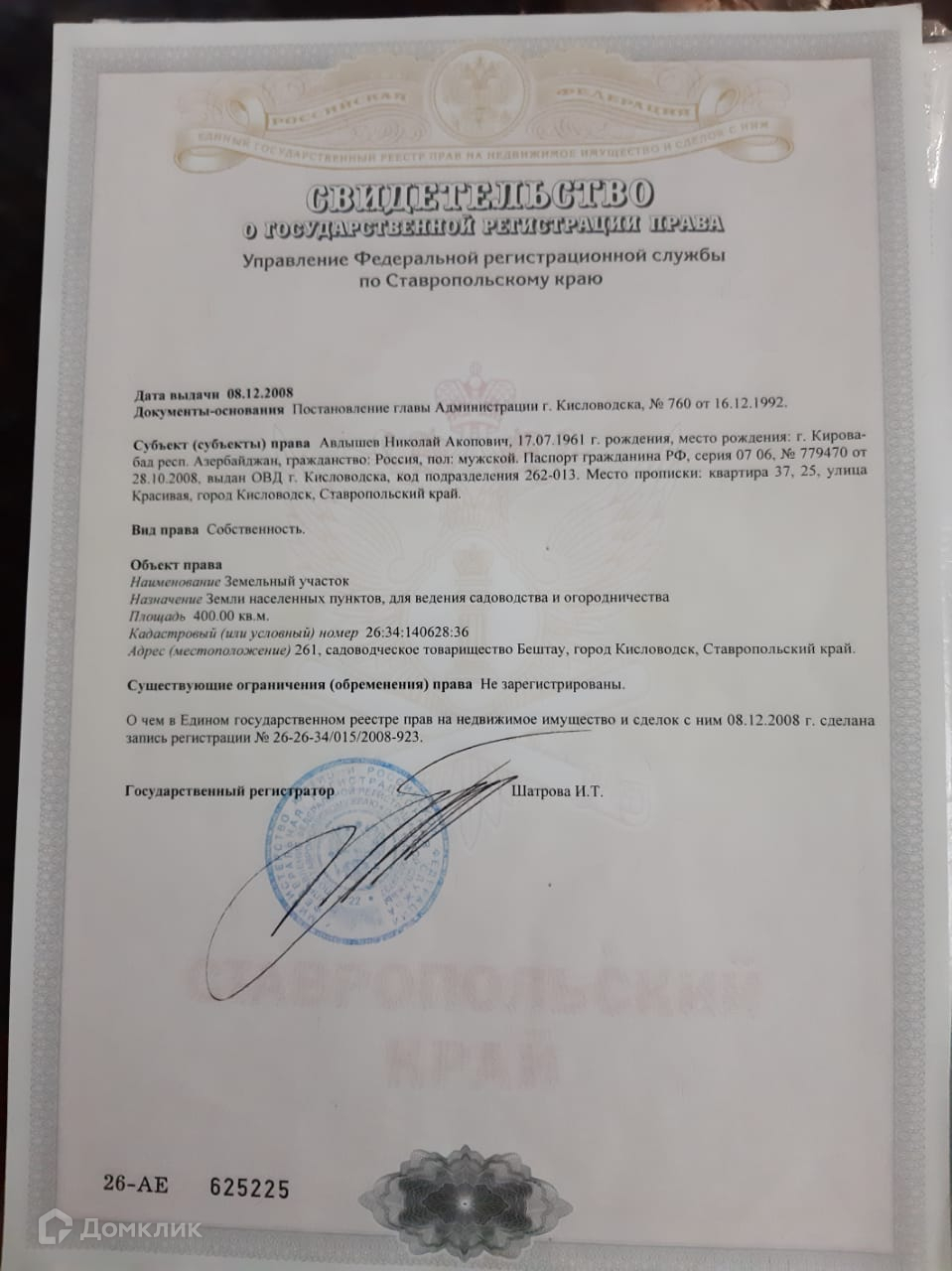 Участок под ИЖС, 4 сот. на продажу в СТ Бештау