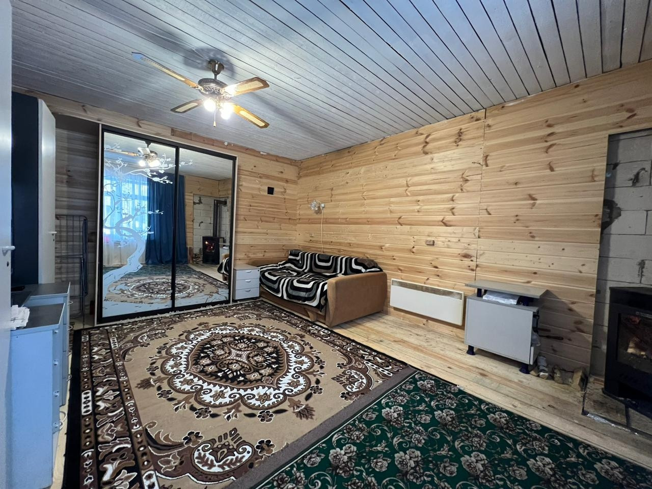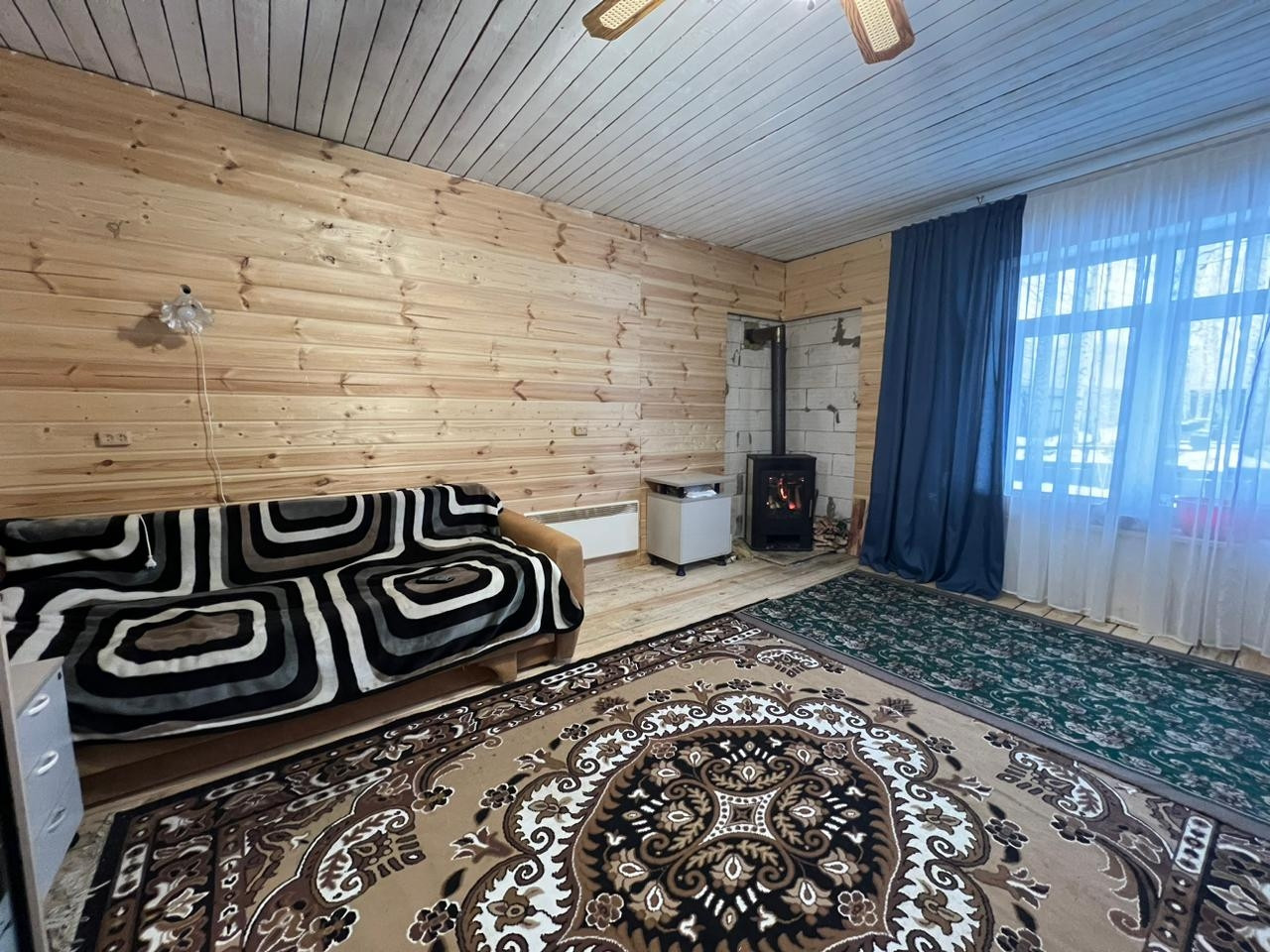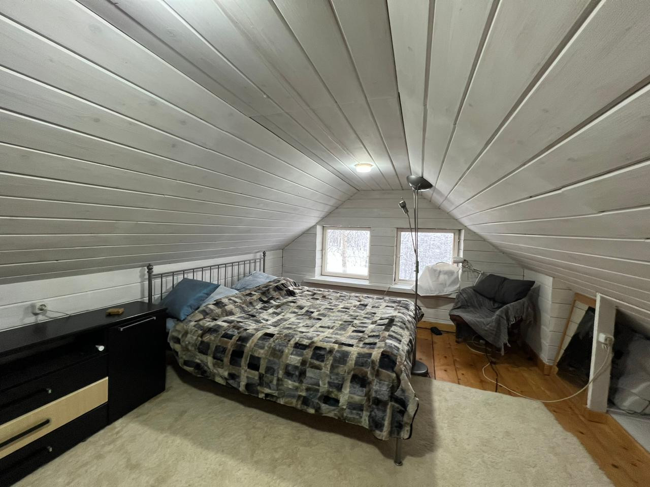 Дом из блоков для круглогодичного проживания на ленточном фундаменте представляет собой 1-этажное здание с мансардным этажом. На первом этаже расположены кухня-столовая, просторная гостиная с печью, санузел. На мансардном этаже расположены две просторные уютные спальни. Очень теплый, уютный дом, отапливается финской печью-камином. Общая площадь дома 80 кв.м.