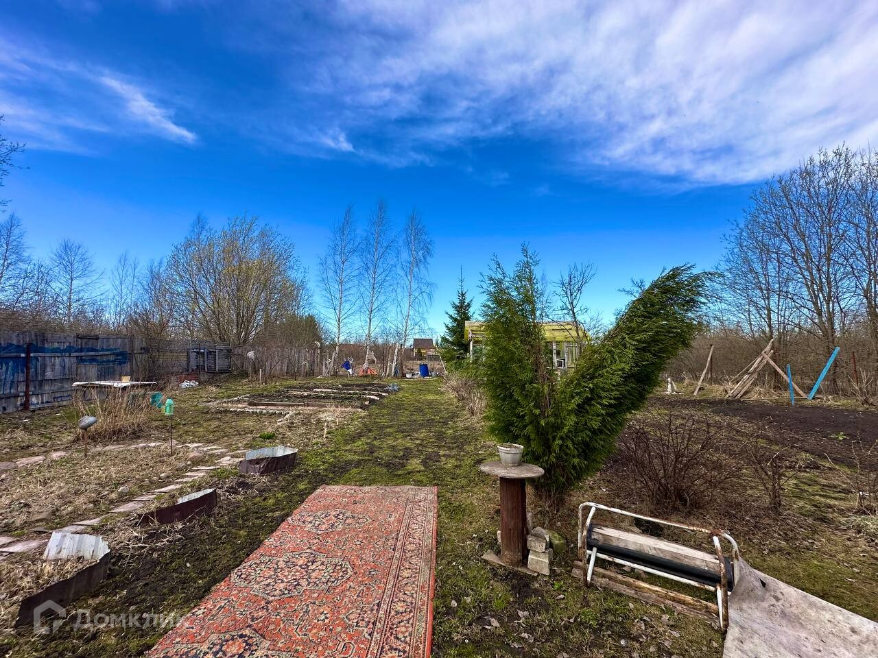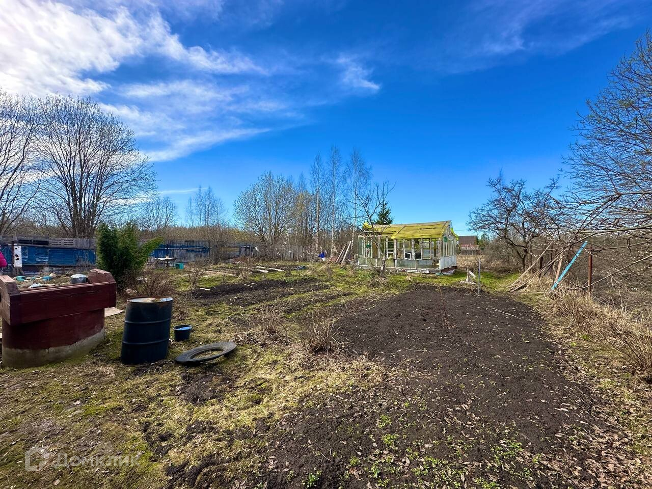 Участок 10 соток, ровный, прямоугольной формы, огорожен забором, с насаждениями и теплицей. Земли сельскохозяйственного назначения, для садоводства.