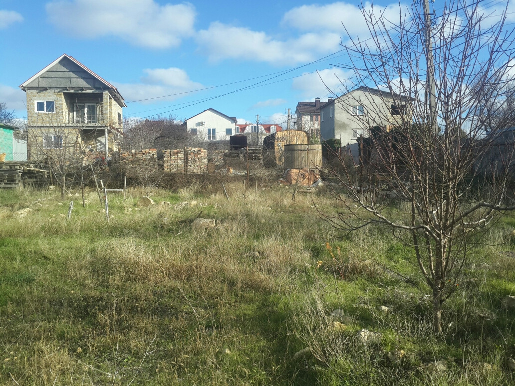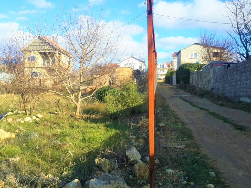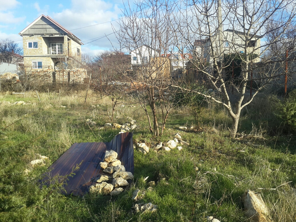 Участок 6 соток, ровный, правильной прямоугольной формы 21х25 м. На участке много фруктовых деревьев и декоративных растений.