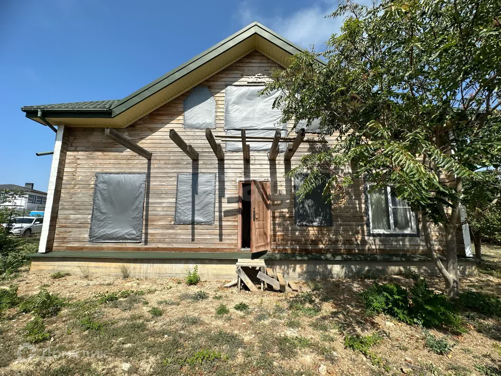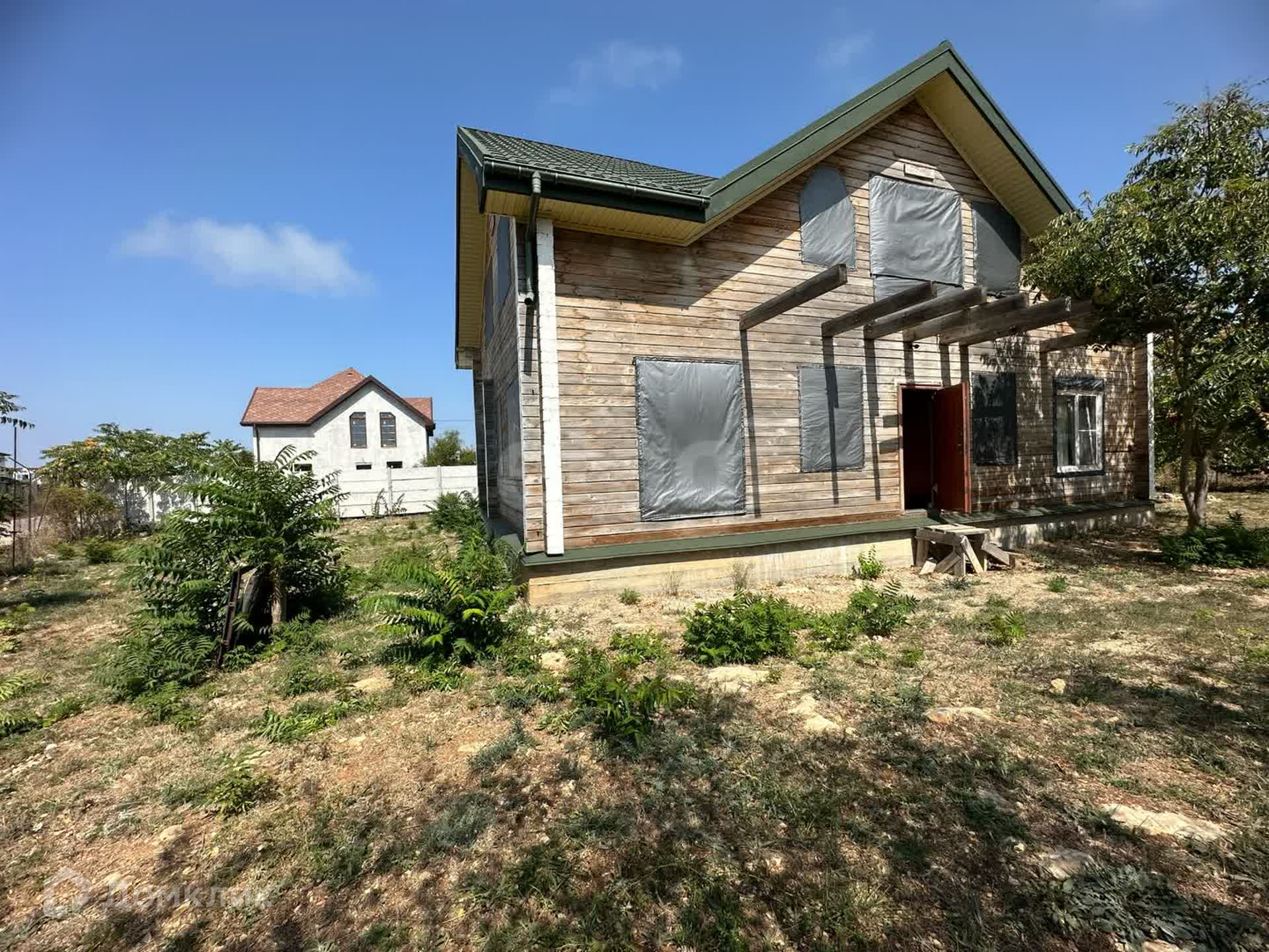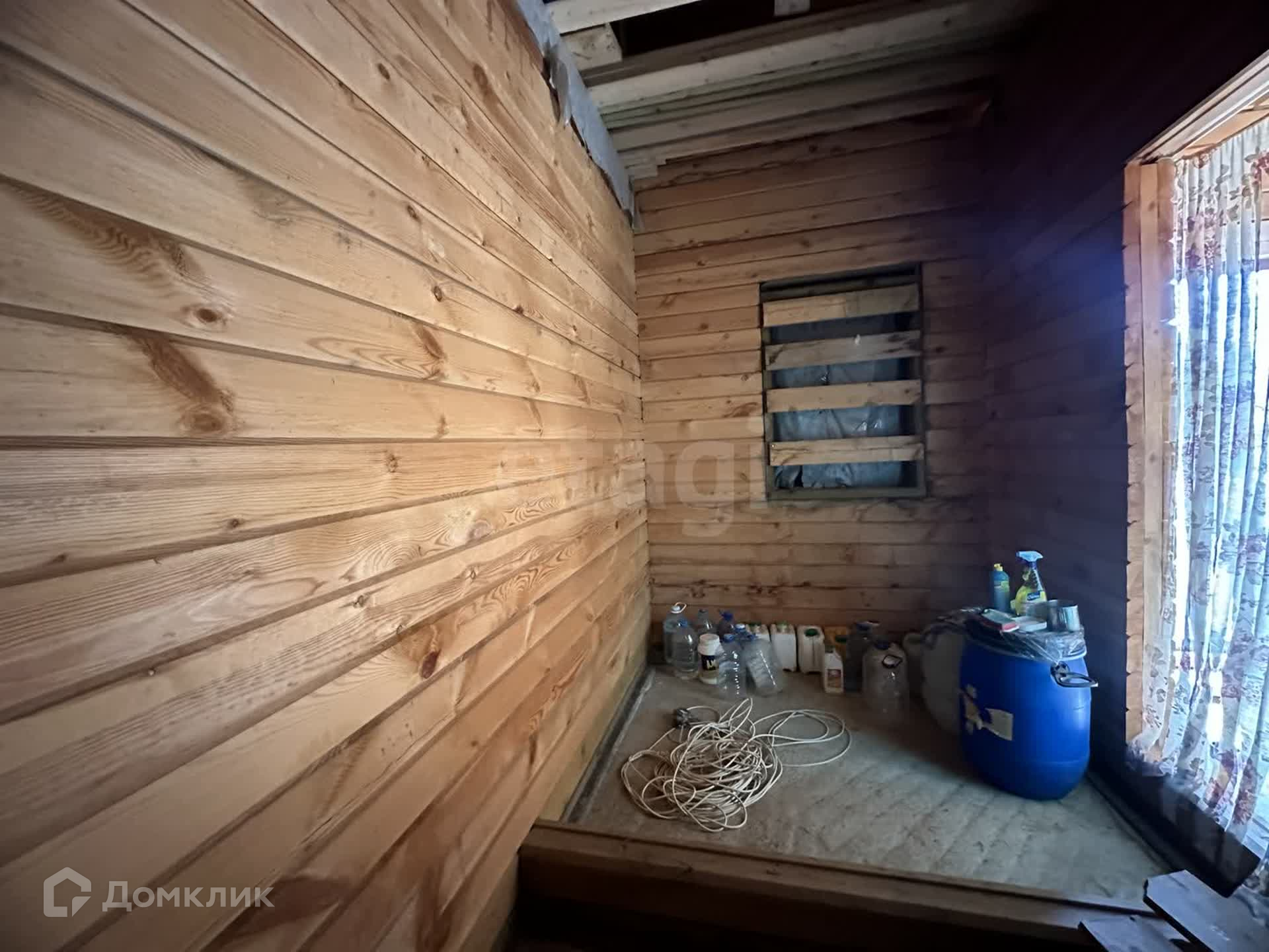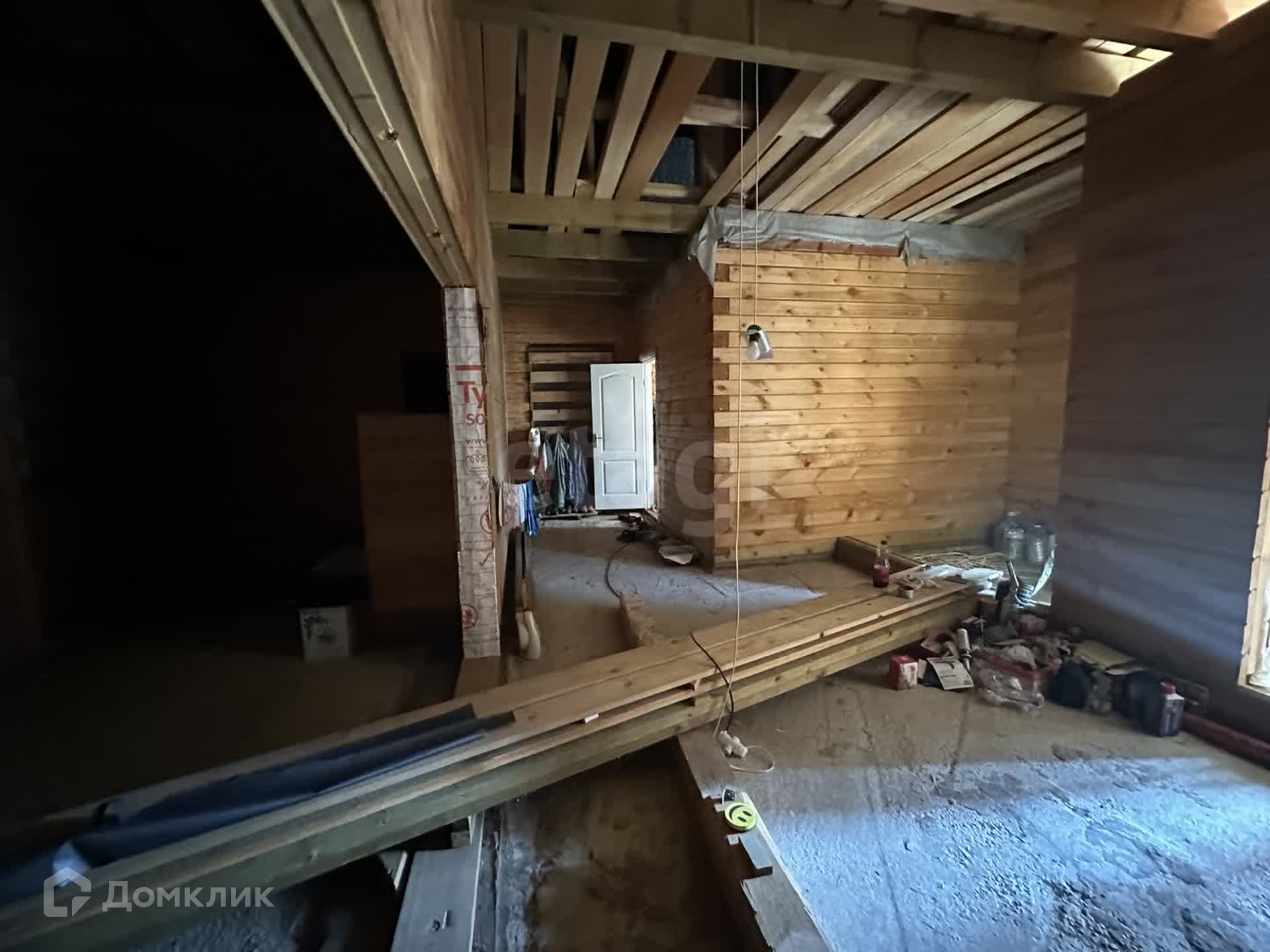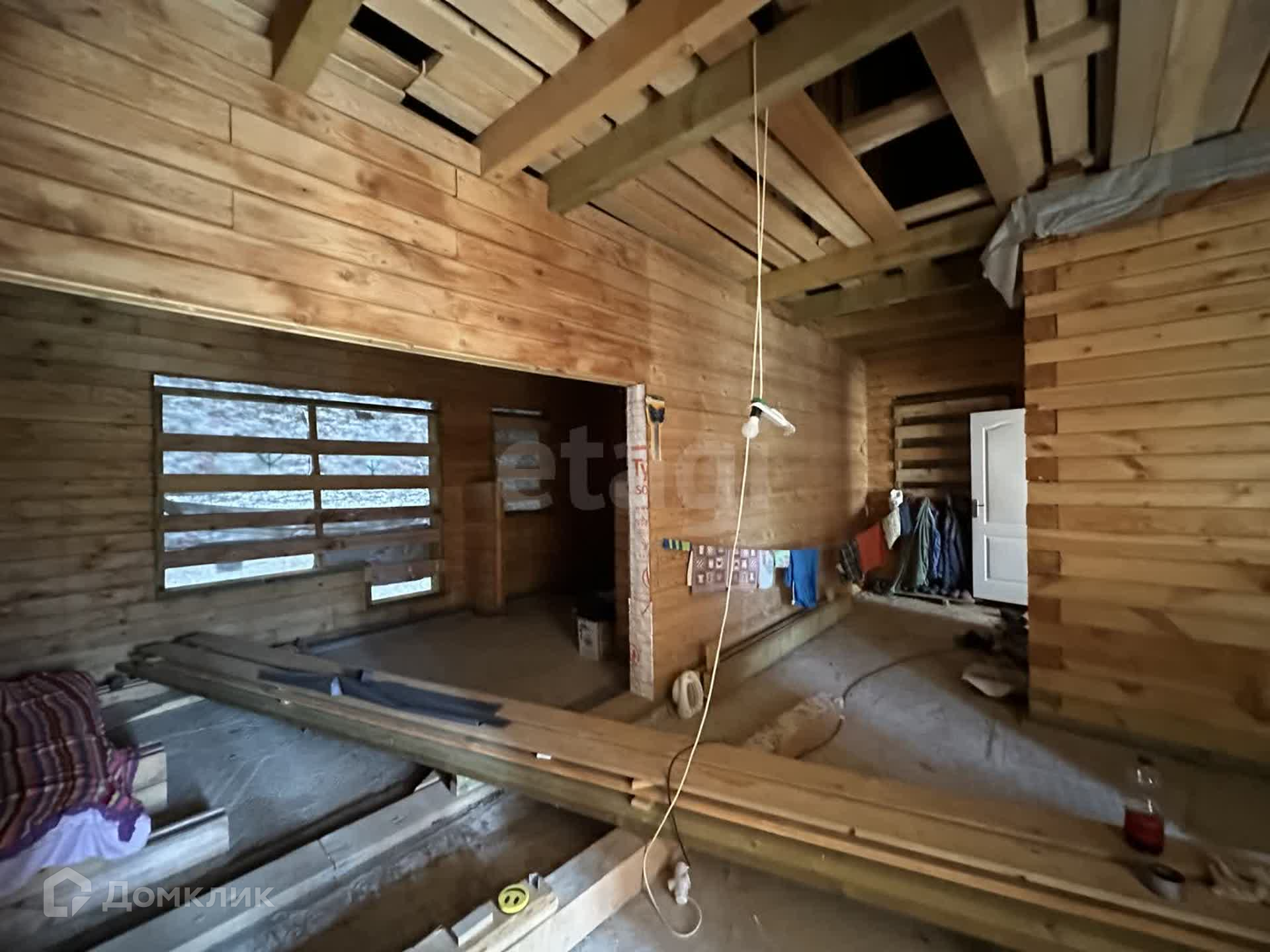 Имеется строительный вагончик, с электричеством. Дом завершен строительством на 80-85 процентов, готова одна жилая комната для круглогодичного проживания. Пиломатериал, крепежный материал для завершения строительства оставляем.
