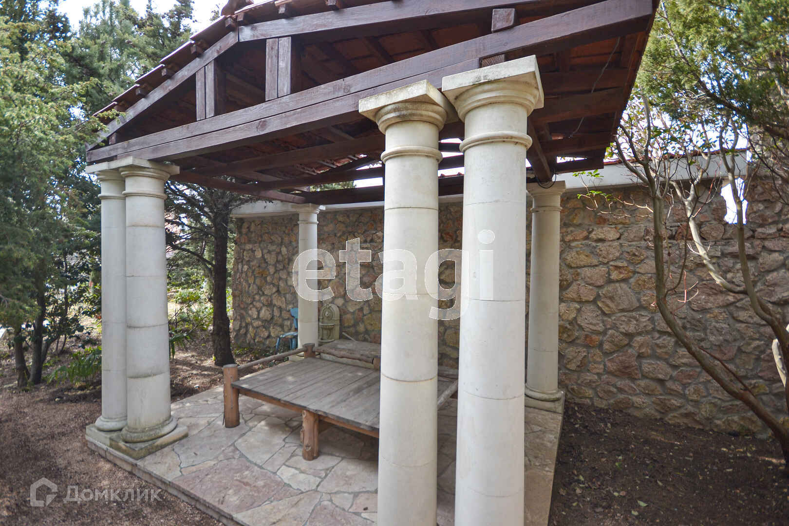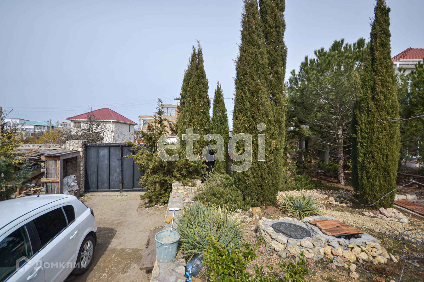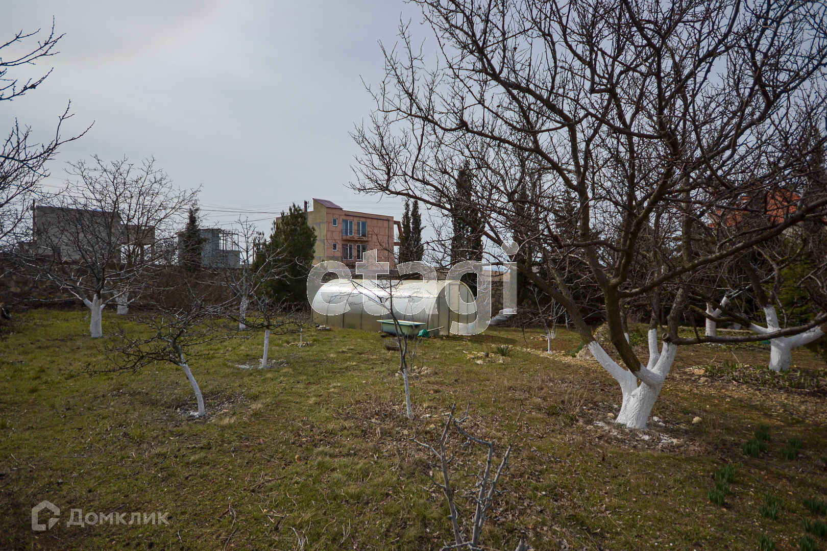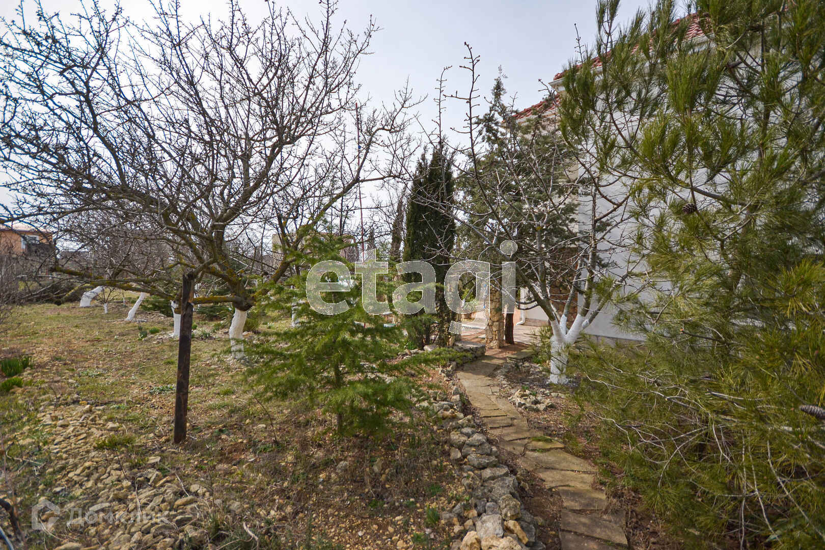 На участке сад: персик, инжир, абрикос, черешня, нектарин, орех, виноград, розмарин, лаванда.