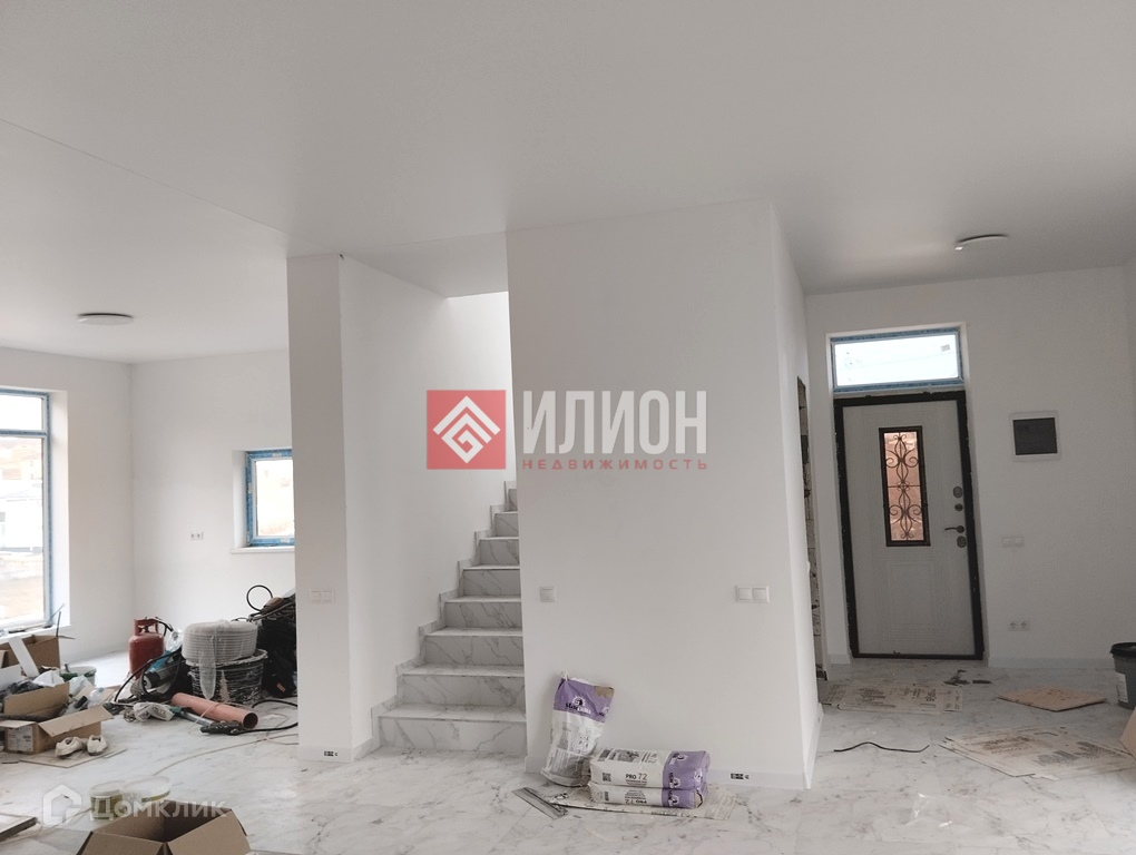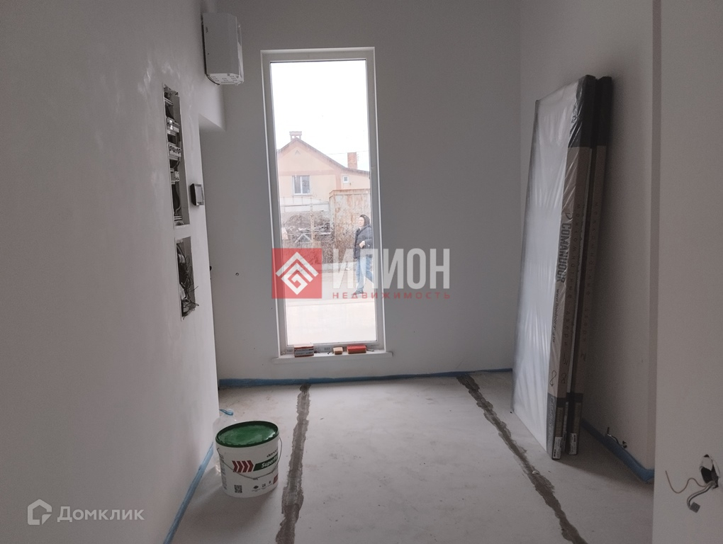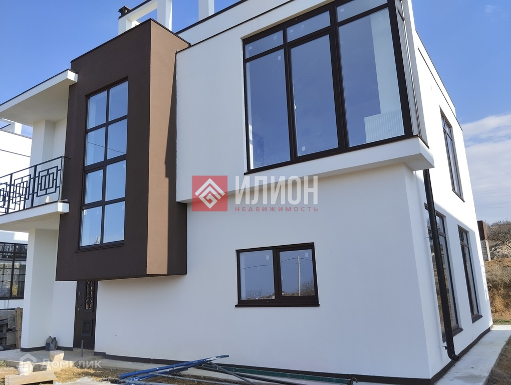 Дом построен  из газобетона, фасад утеплен минеральной ватой, высота потолков 3.2 метра. Есть третий этаж- эксплуатируемая кровля с видом на берег моря. Витражные окна по периметру. Дом светлый
