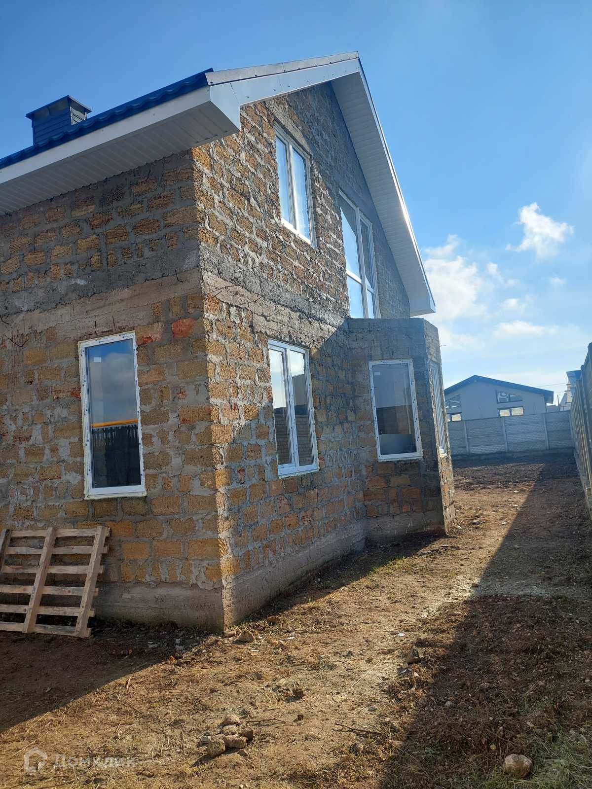 Дом построен на участке 4 сотки,  из природного камня ракушка, окна пластиковые, электричество 15 КВТ заведено. Остальные коммуникации оплачены, но не заведены. Дом без внутренней отделки, для реализации вашей дизайнерской фантазии.