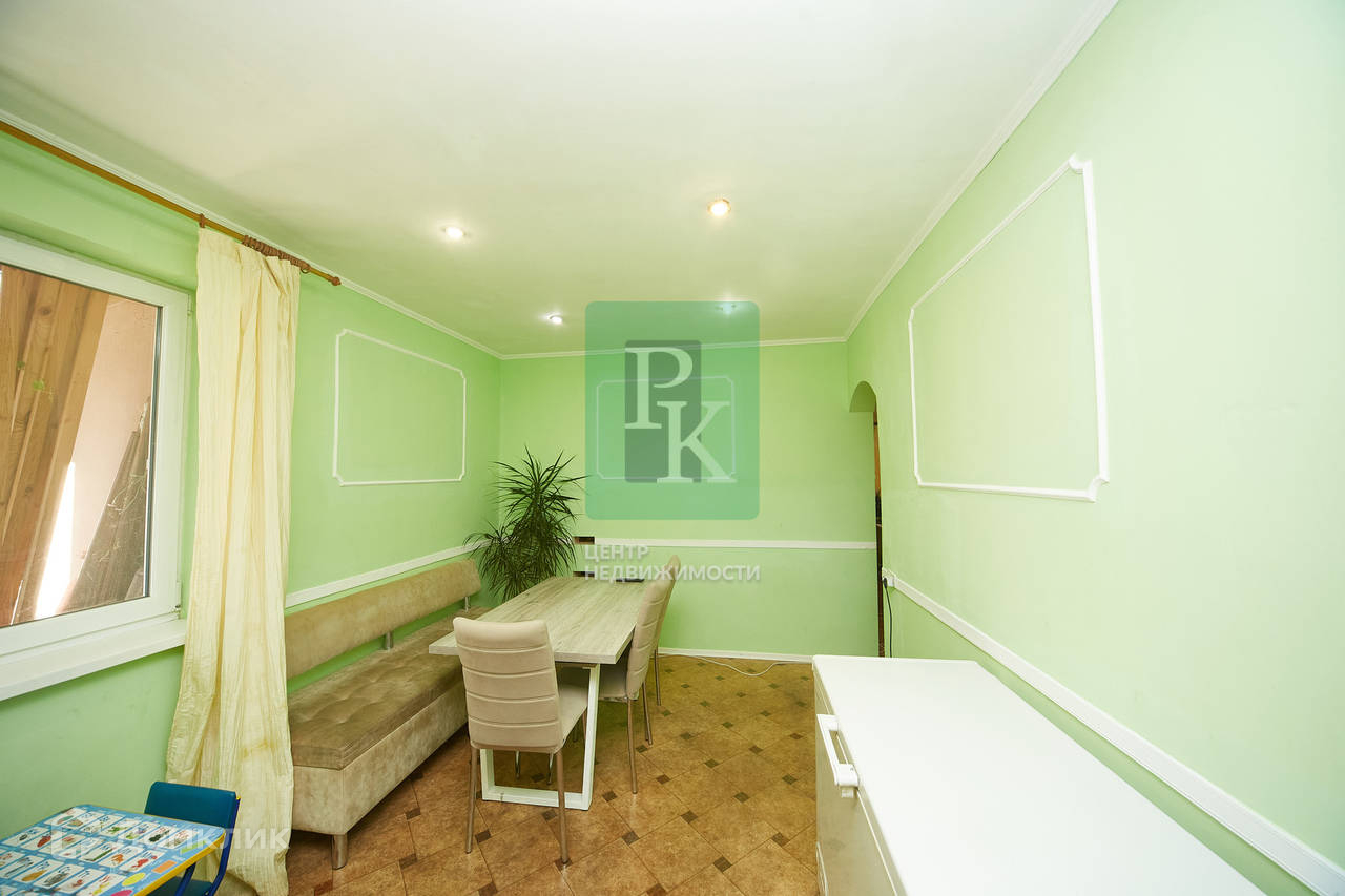 Дом 140 м² на участке 4 сотки, двухэтажный. Расположен в г. Севастополь, Балаклавский район, СНТ “Дионис”. Коммуникации: электричество, водоснабжение, канализация.