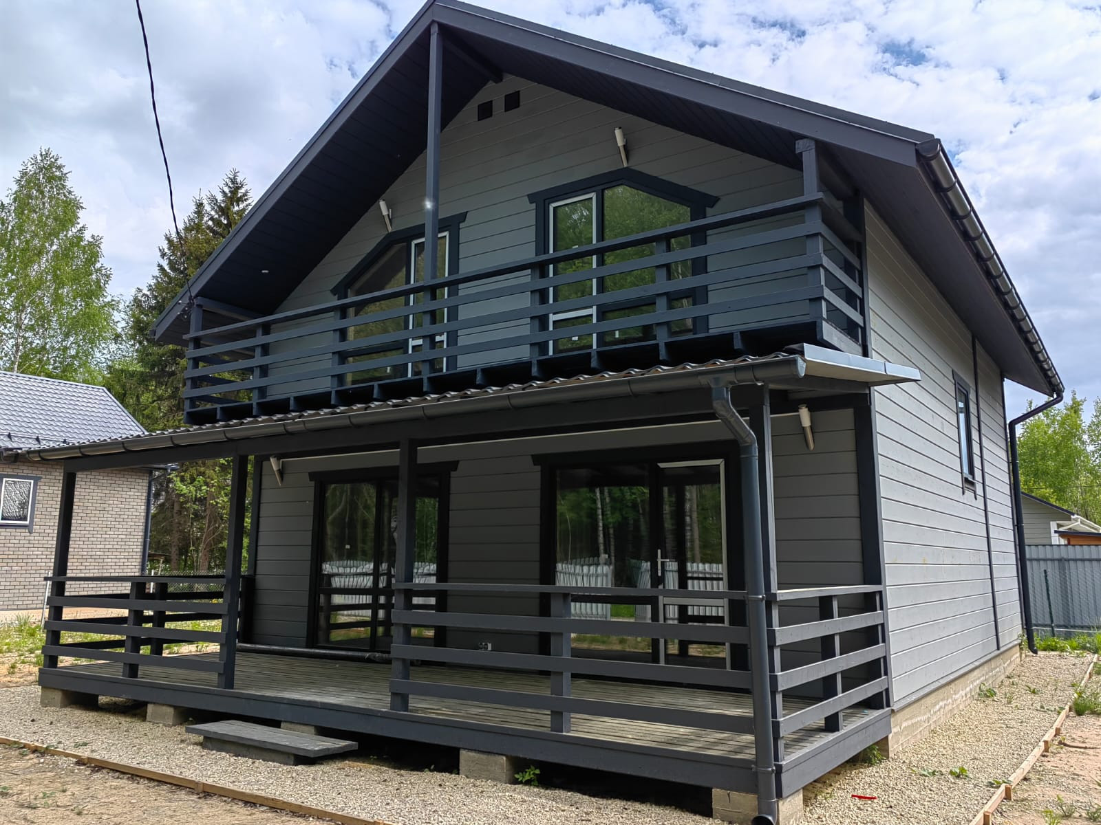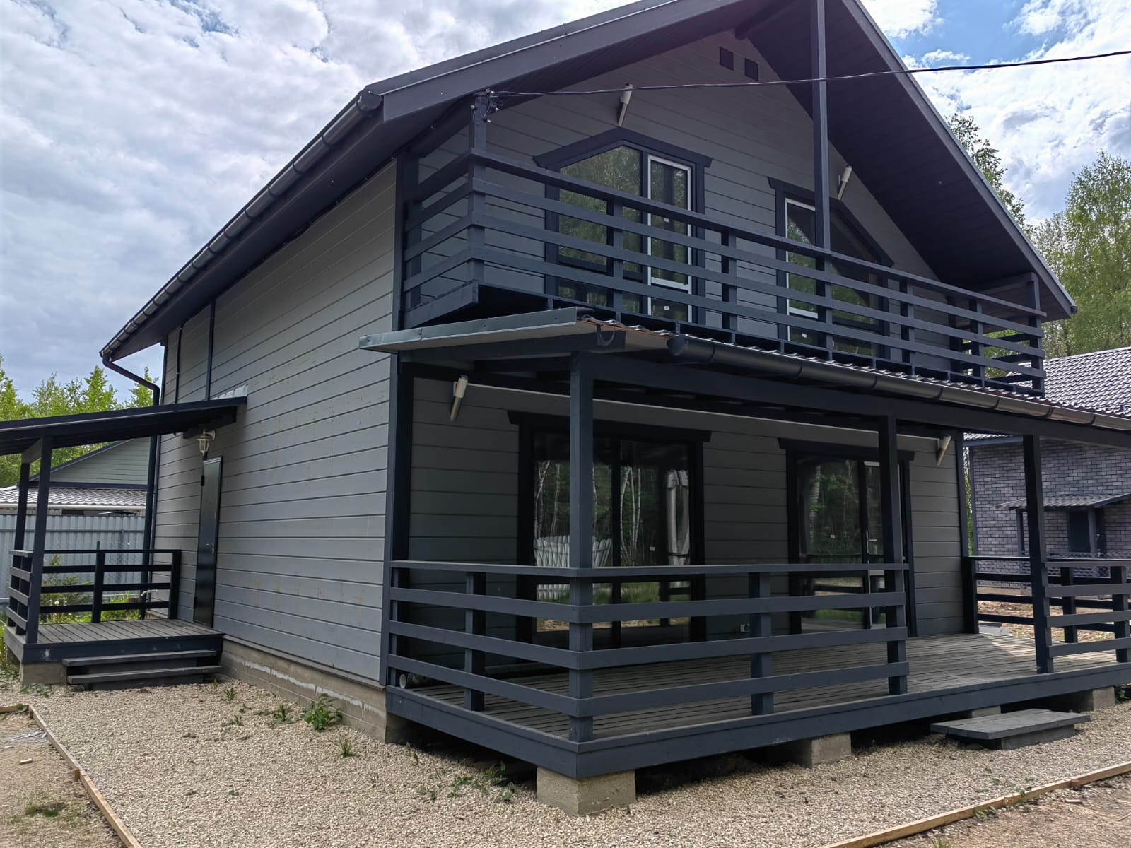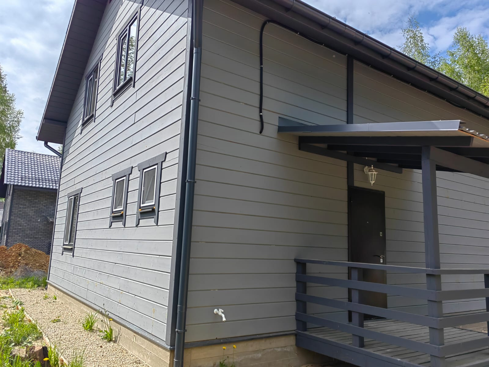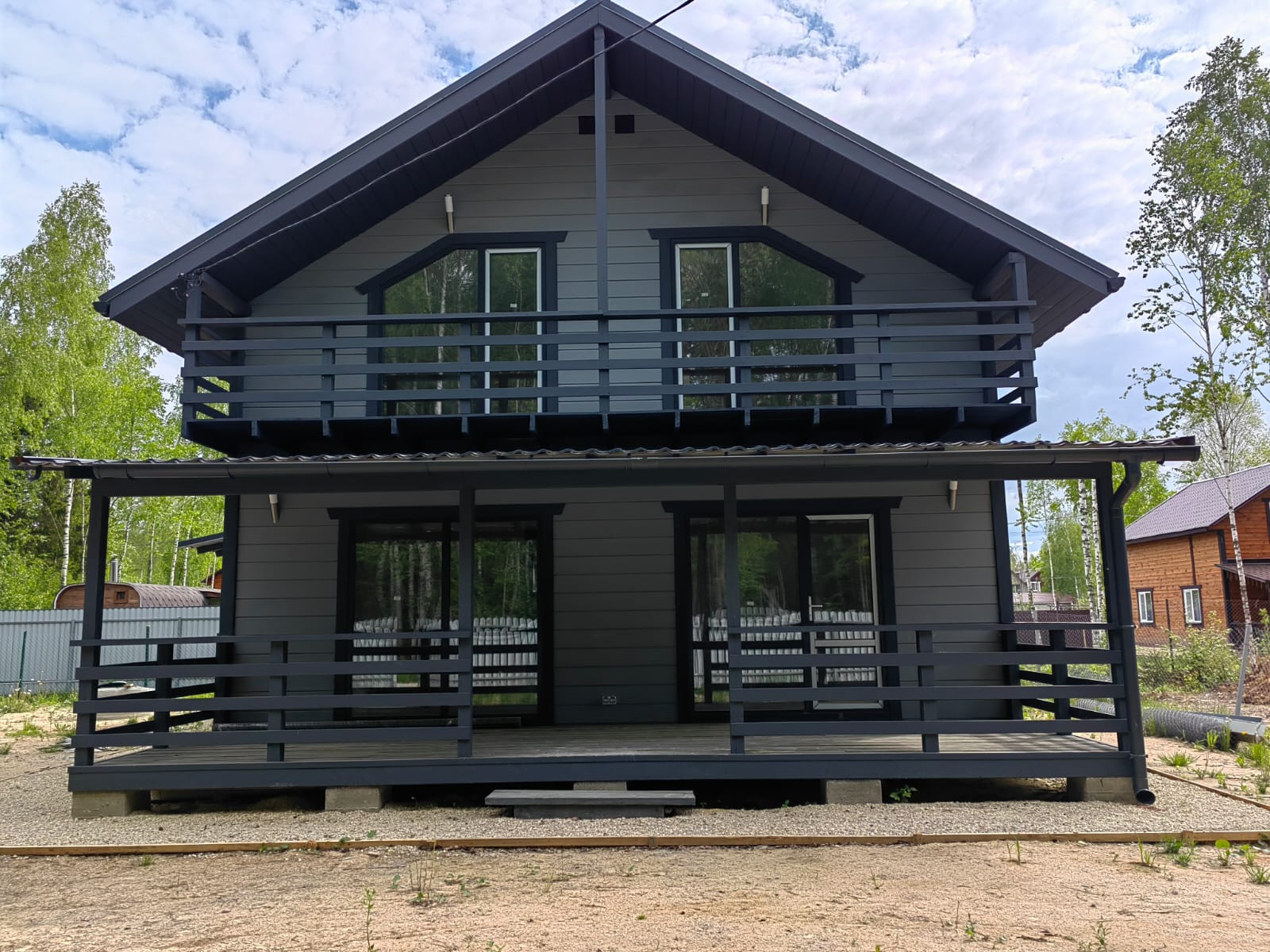 Внешняя и внутренняя отделка дома - имитация бруса, фундамент - монолитная плита. Окна - двухкамерные стеклопакеты, кровля - метало-черепица.