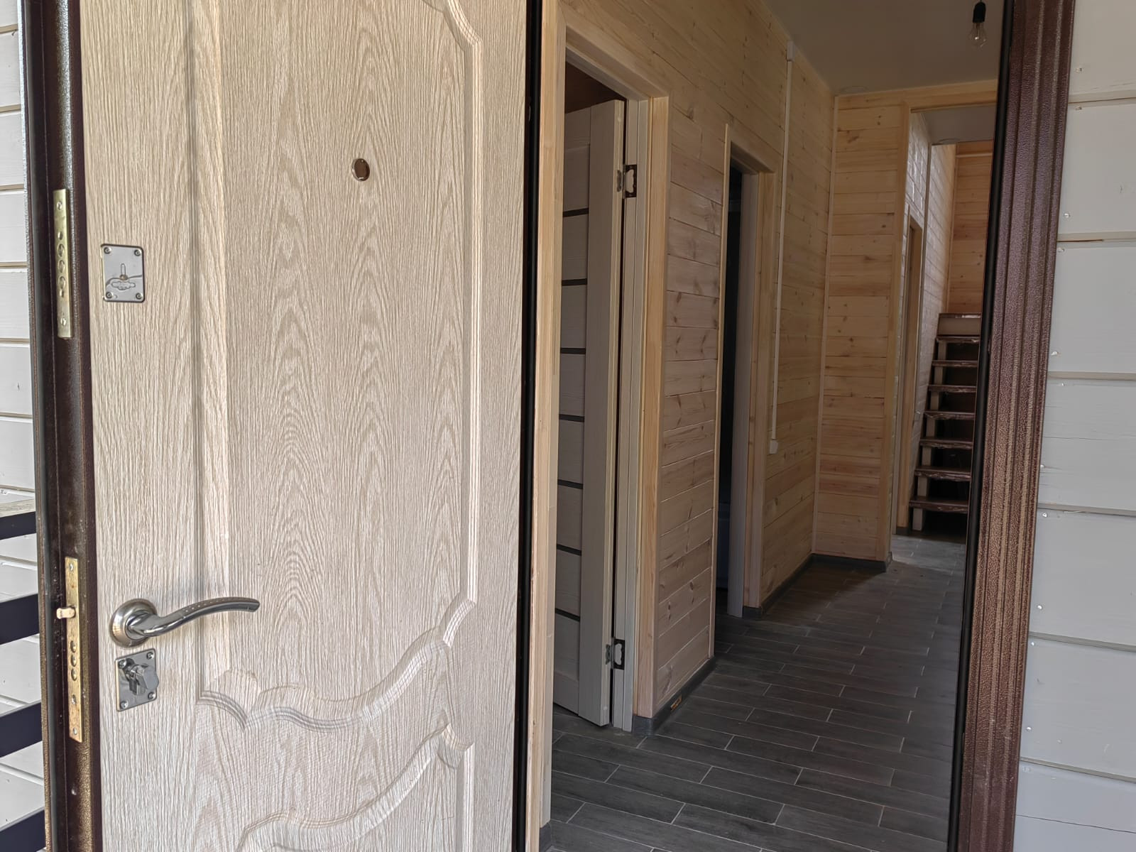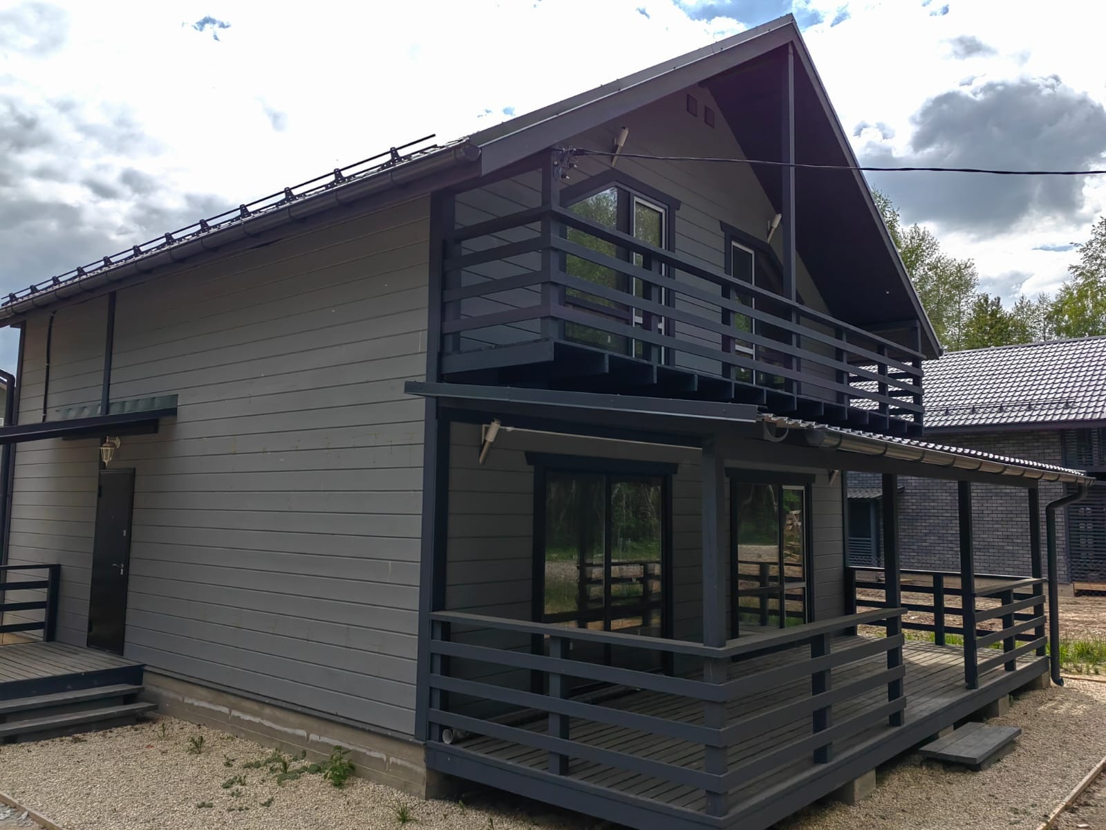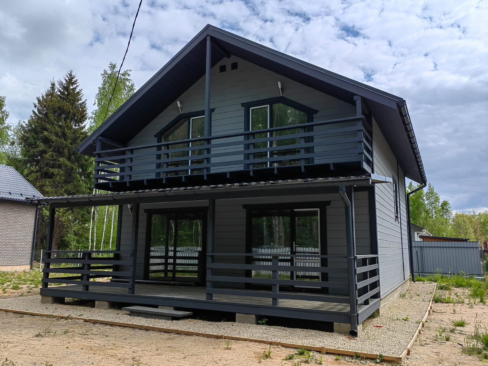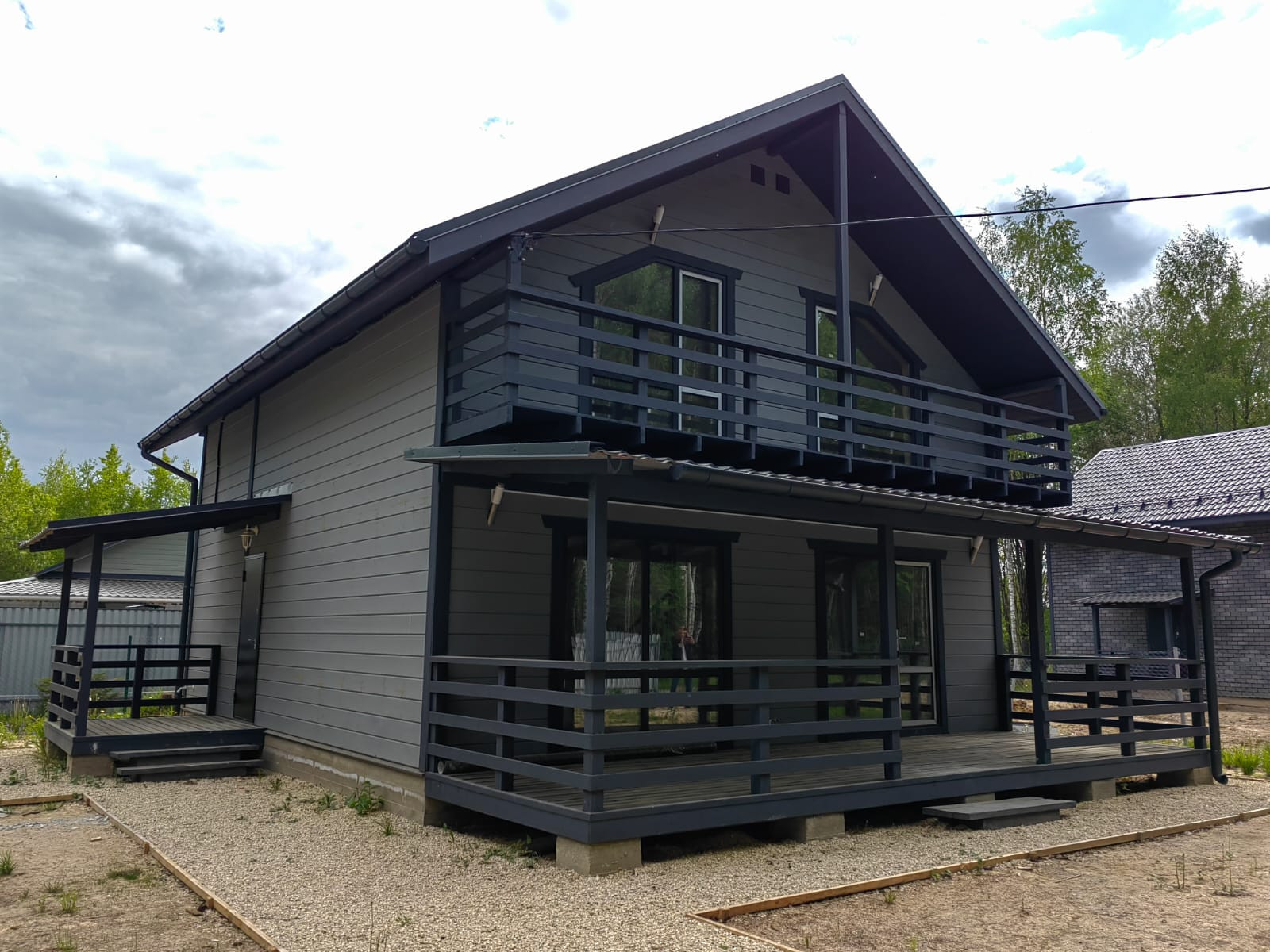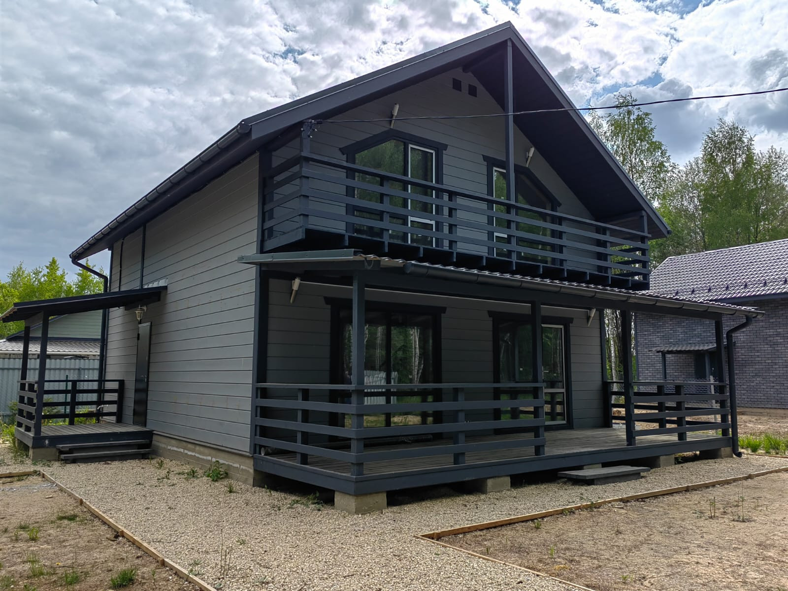 Внешняя и внутренняя отделка дома - имитация бруса, фундамент - монолитная плита. Окна - двухкамерные стеклопакеты, кровля - метало-черепица.