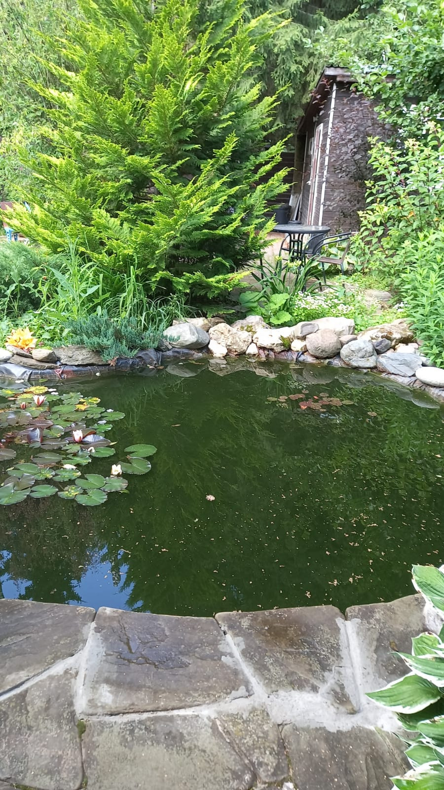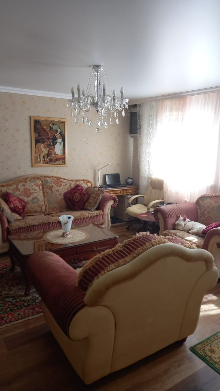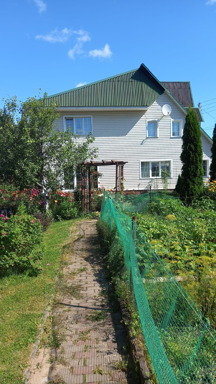 Площадь дома примерно 170 кв из пеноблоков. Количество этажей 2. Два санузла в доме (на первом этаже установлена душевая кабина, на втором только унитаз и раковина). Отопление газовое, во всех комнатах установлены батареи. Скважина на участке глубиной 14 метров. В доме горячая и холодная вода. Площадь участка по документам 10 соток, а по факту 13 точно. На участке есть точки летнего водопровода. Баня из сруба 6х9, вода и освещение внутрь заведены. Внутри бани есть купель. Есть подсобное помещение площадью 38 кв.м с погребом. Разделена на летнюю кухню и подсобное помещение. На участке установлена теплица на фундаменте с автоматическим поливом внутри. Две парковочные зоны со своими воротами (на одно машиноместо и на три машиноместа). Участок ровный и ухоженный. Зона отдыха с прудом. Установлены кондиционеры на втором этаже в двух спальнях и на первом этаже в кухне-столовой.