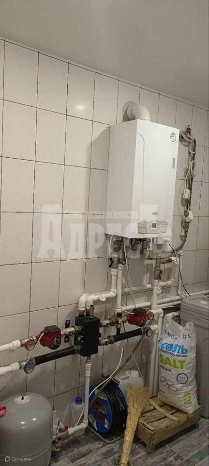 Отопление - теплые полы водяной с датчиками на каждом этаже, по всему первому этажу, на втором этаже только в ванной комнате. Радиаторы установлены по всему дому. Установлен газовый котел.