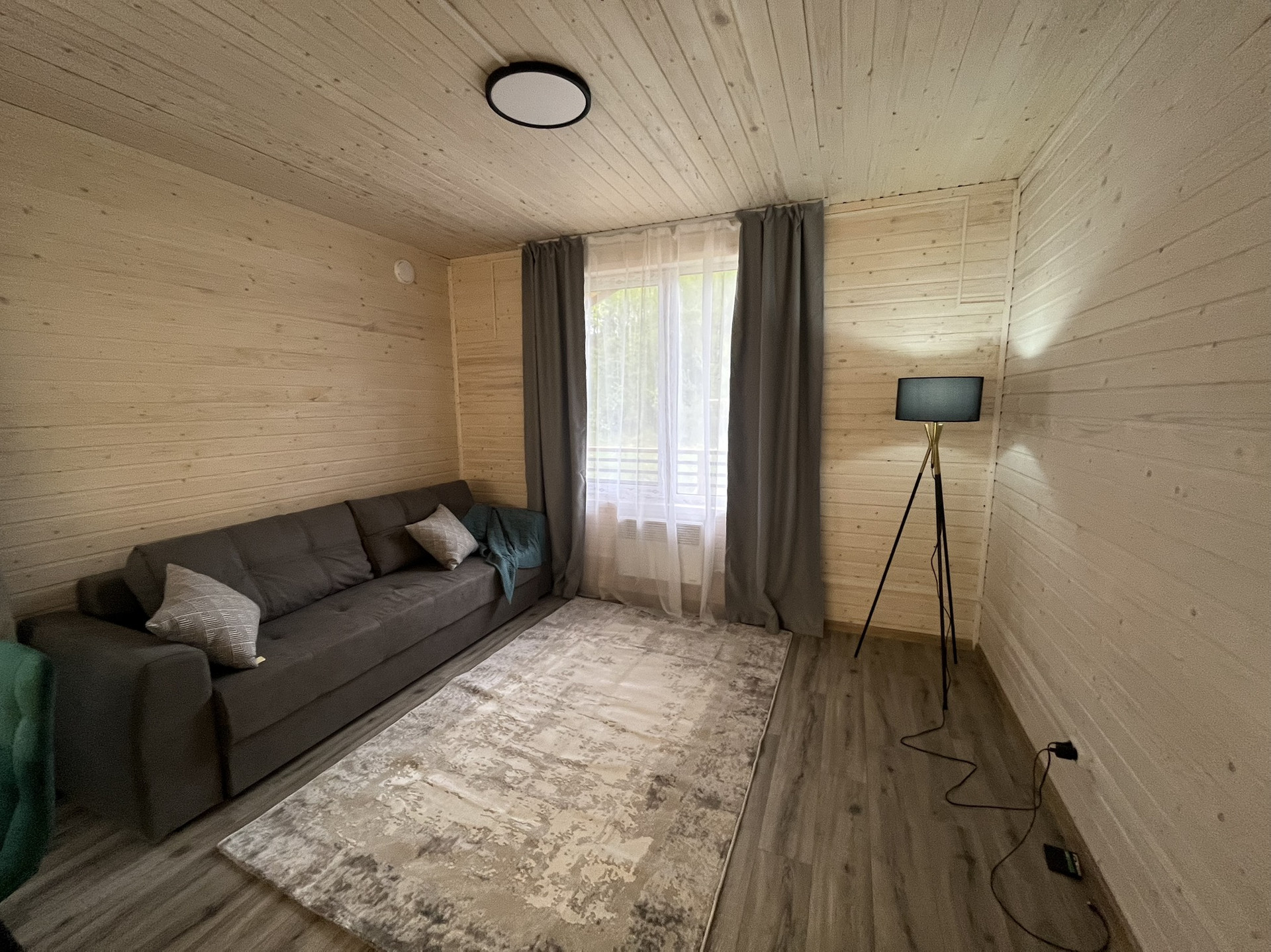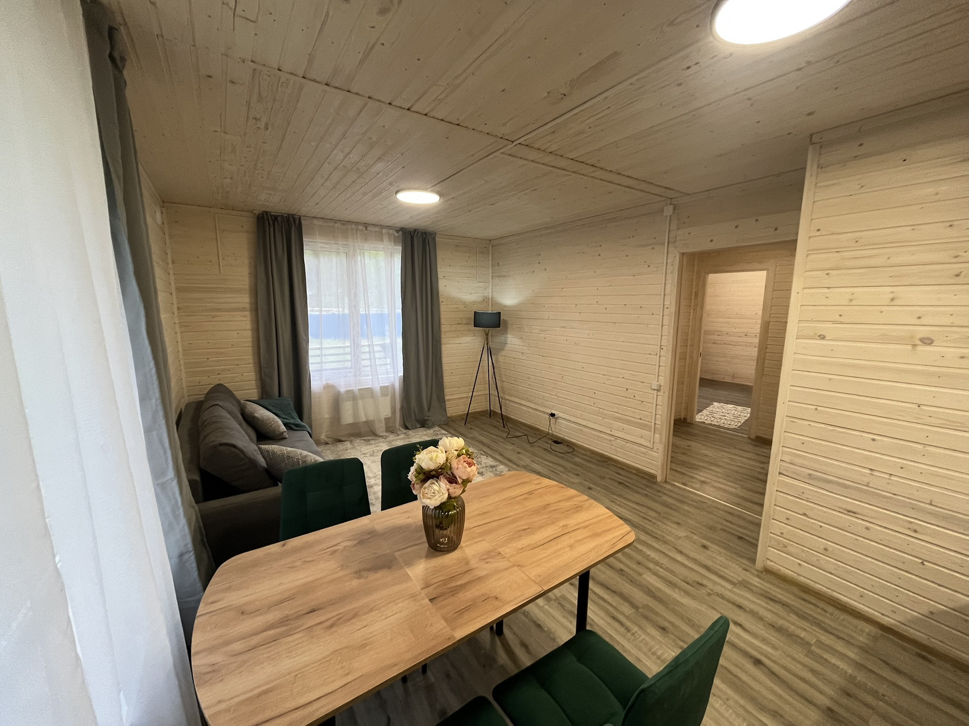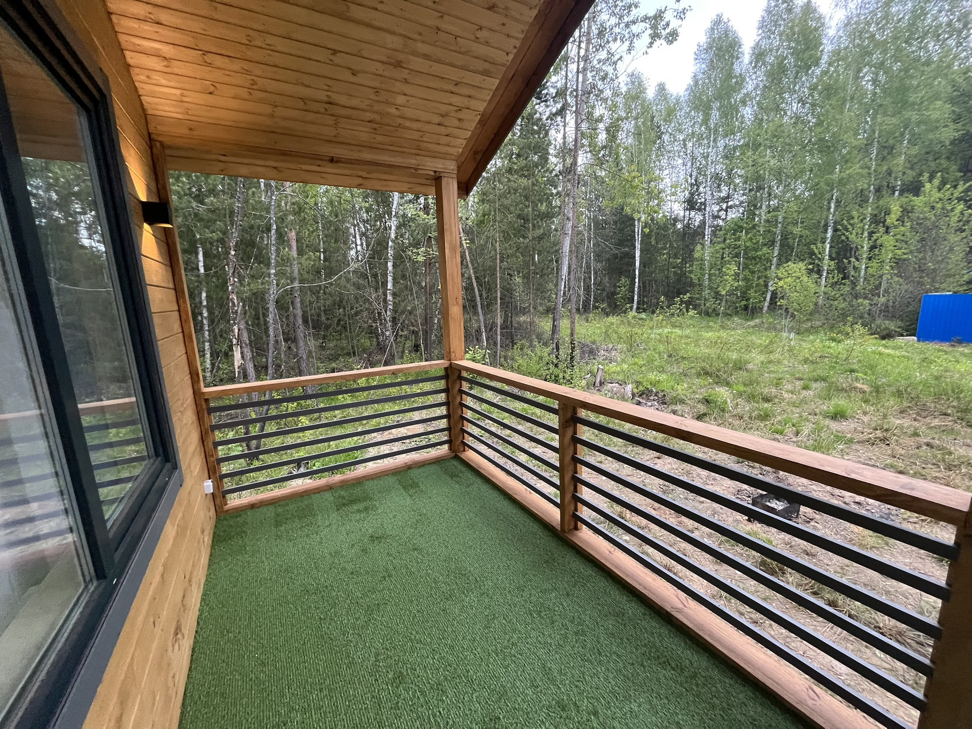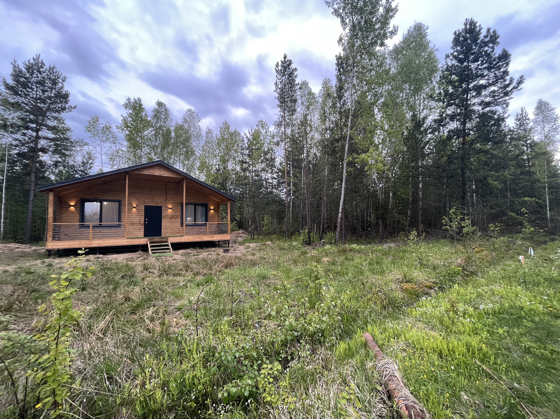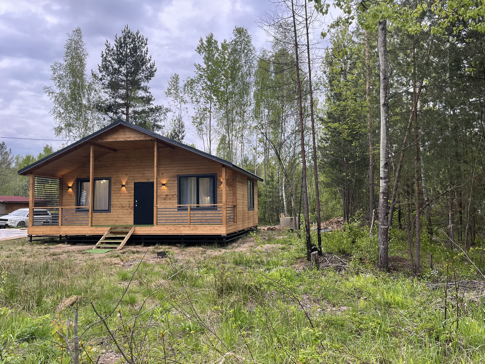 Дом 9,30 м. на 8,0 м. Ширина веранды 2 метра. Внешняя и внутренняя отделка -имитация бруса. Крыша металлочерепица, окна увеличены. Дом подходит для круглогодичного проживания. Утепление 150 мм. Вода в доме. Электричество 15 кВт. Отопление электрическое, конвекторное. В доме две спальни, кухня-гостиная, совмещенный санузел.