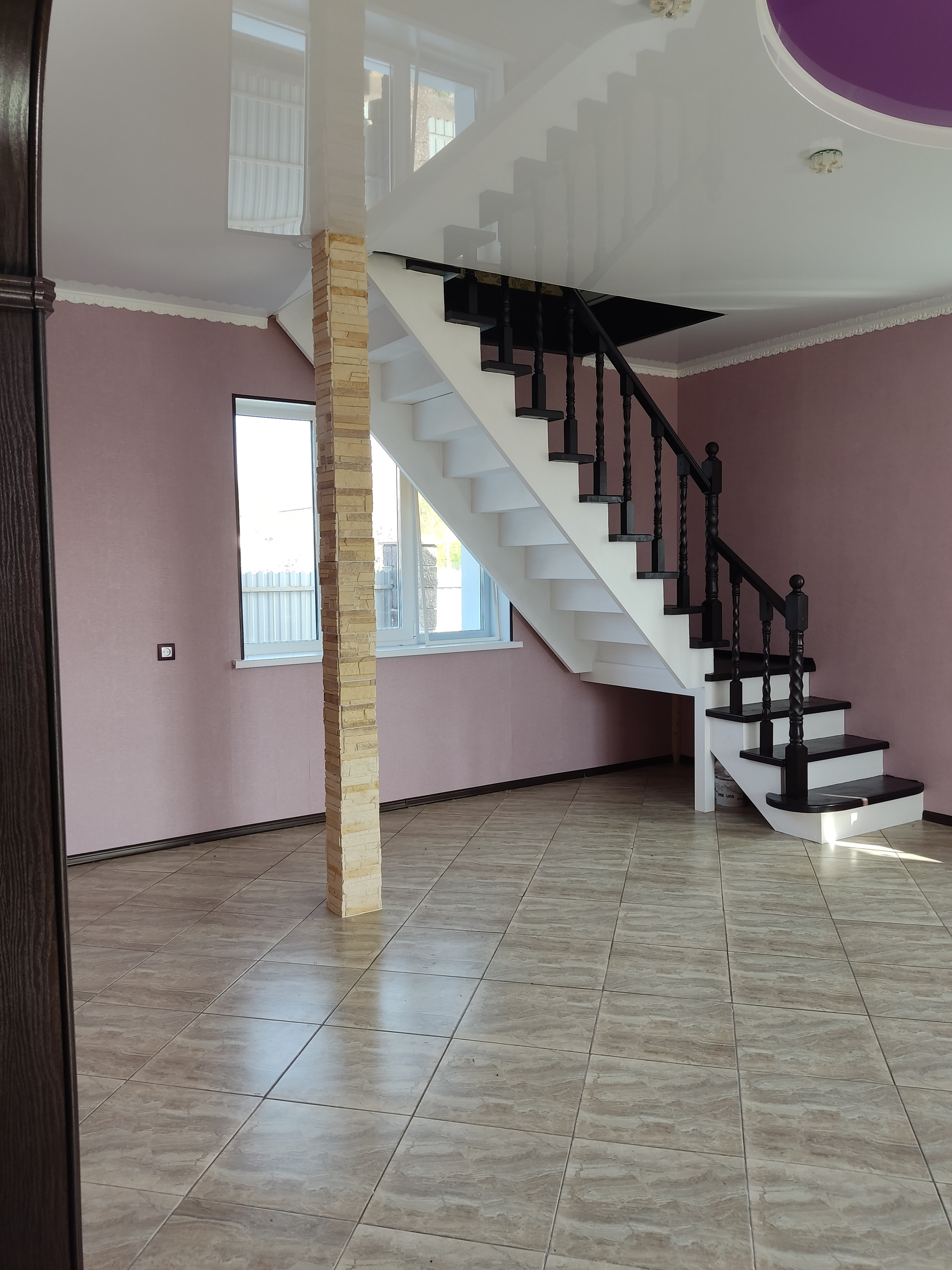 1 этаж гостиная 35 кв.м, кухня 9,4, холл 15 кв.м, санузел.