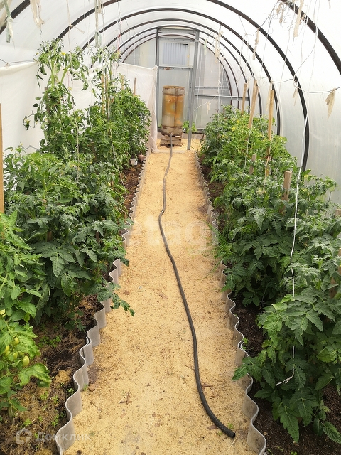 Колодец с чистой водой, две поликарбонатные теплицы , место для бассейна , аккуратные, спаланированные грядки, небольшой курятник, дорожки по участку выложены из тротуарной плитки .