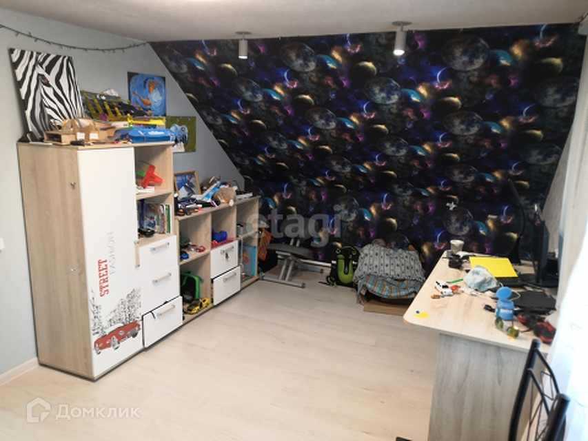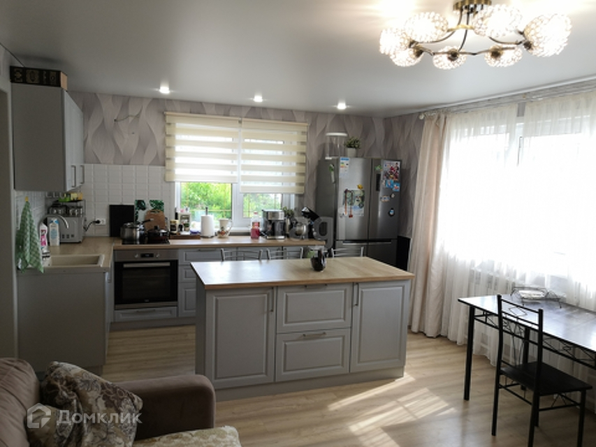 Дом площадью 100 квадратов в нём есть большая кухня-гостиная , ванная комната, котельная , две вместительные гардеробные. На втором этаже расположены две комнаты и гардеробная. В доме сделан хороший ремонт и установлена стильная мебель.