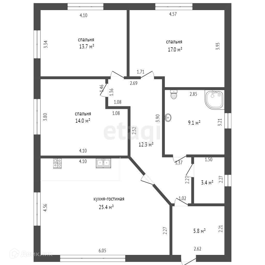 Дoм cостоит из 3 спален, ( в двух из них предусмотрены ниши для шкафов-купе), огромная кухня- гостинная, санузел, тех.помещение, коридор и "предбанник".