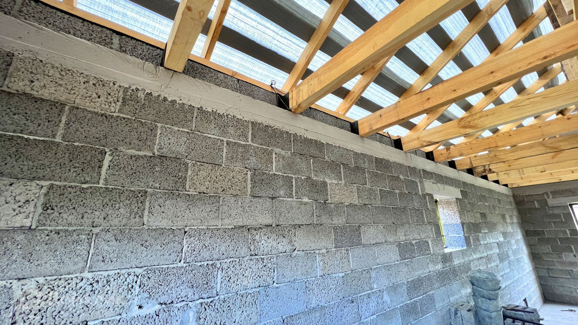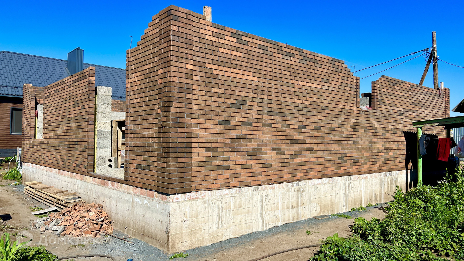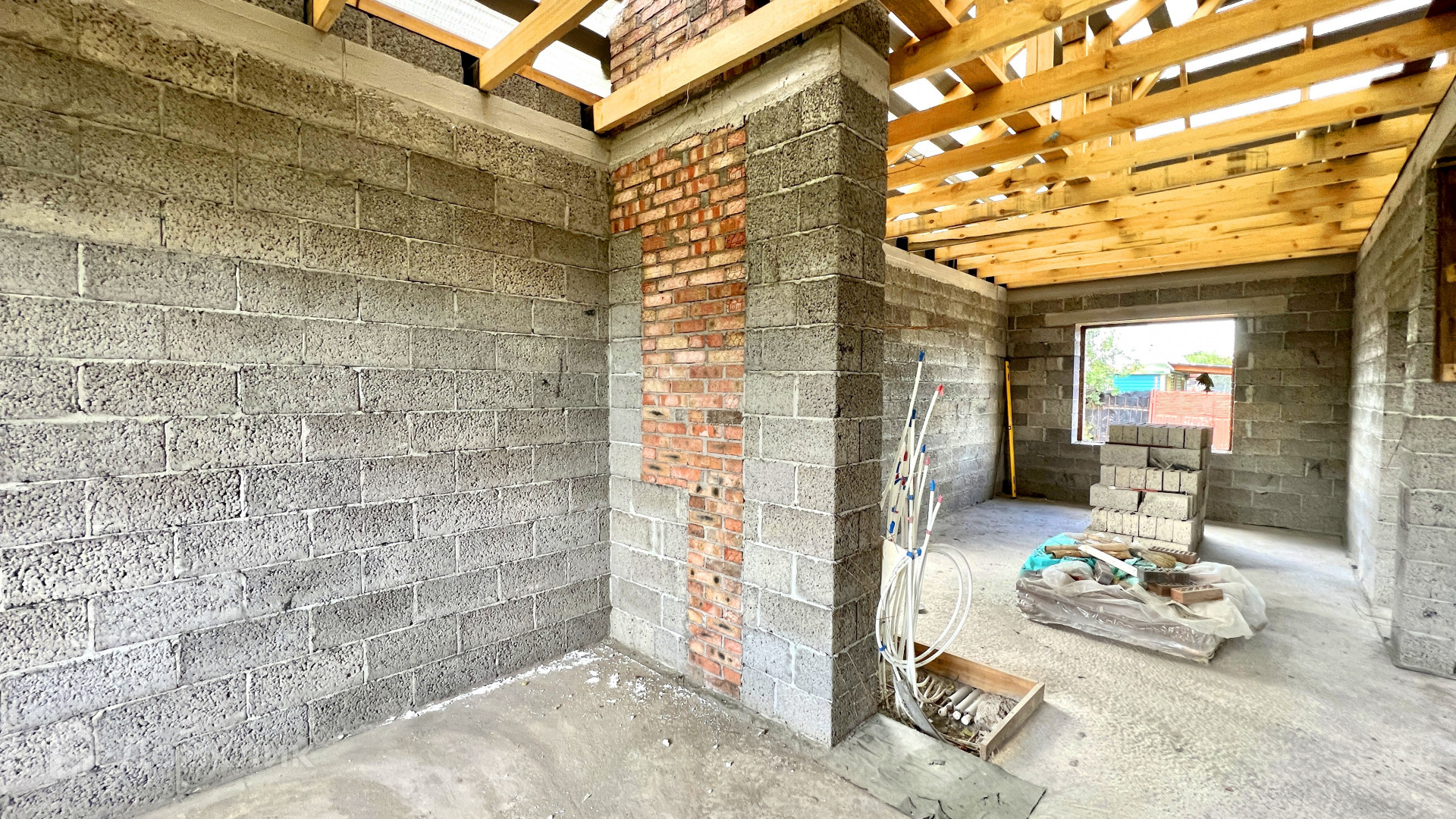 - стены заводской керамзитоблок (300мм), утеплитель каменная вата (100мм), вент-каналы, керамический облицовочный кирпич (BRAER) выложен в стиле «баварская кладка», качественный полноценный армопояс по всем несущим стенам дома;