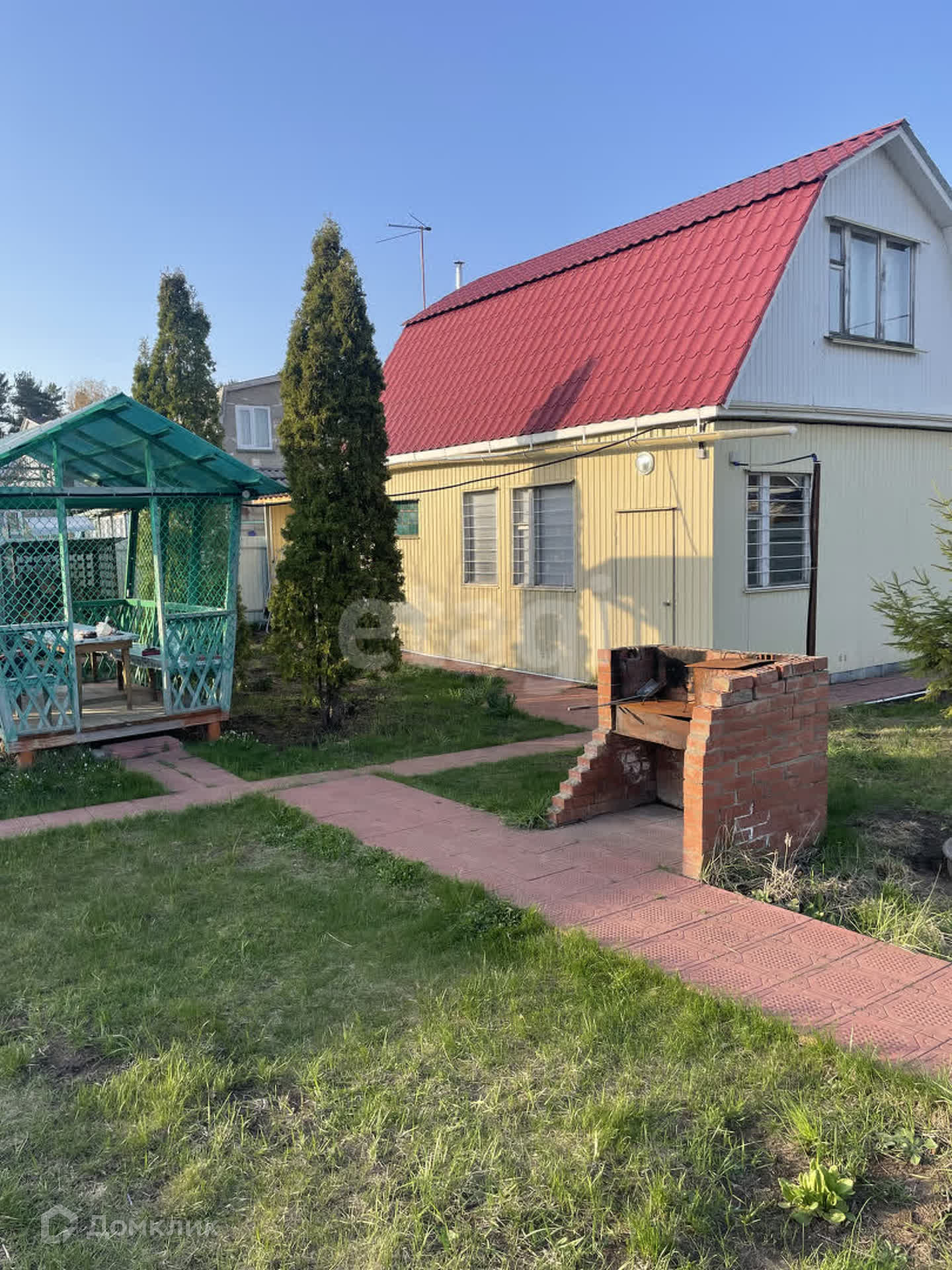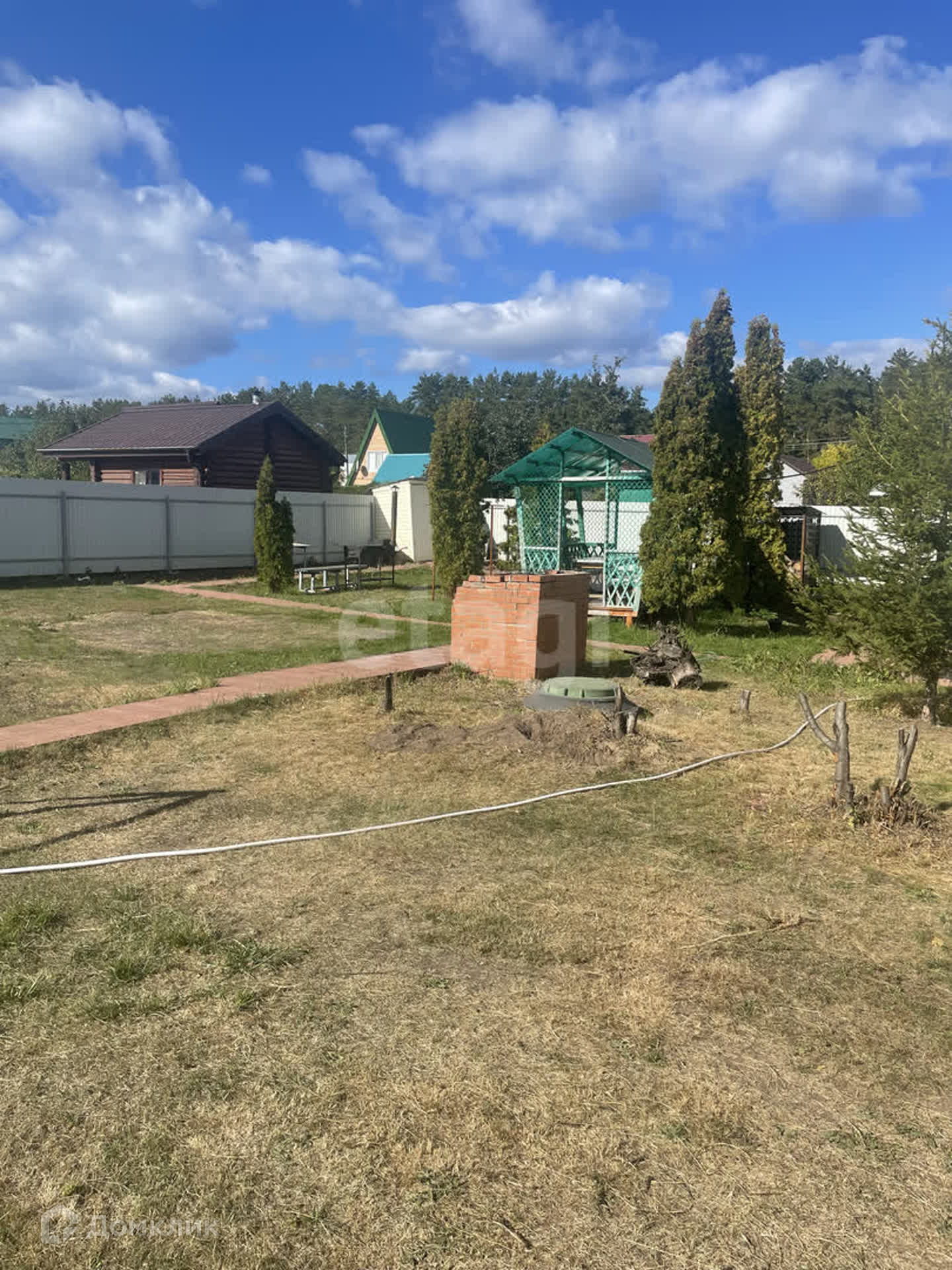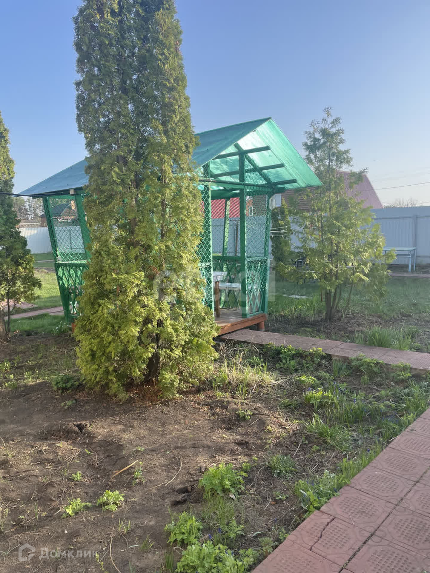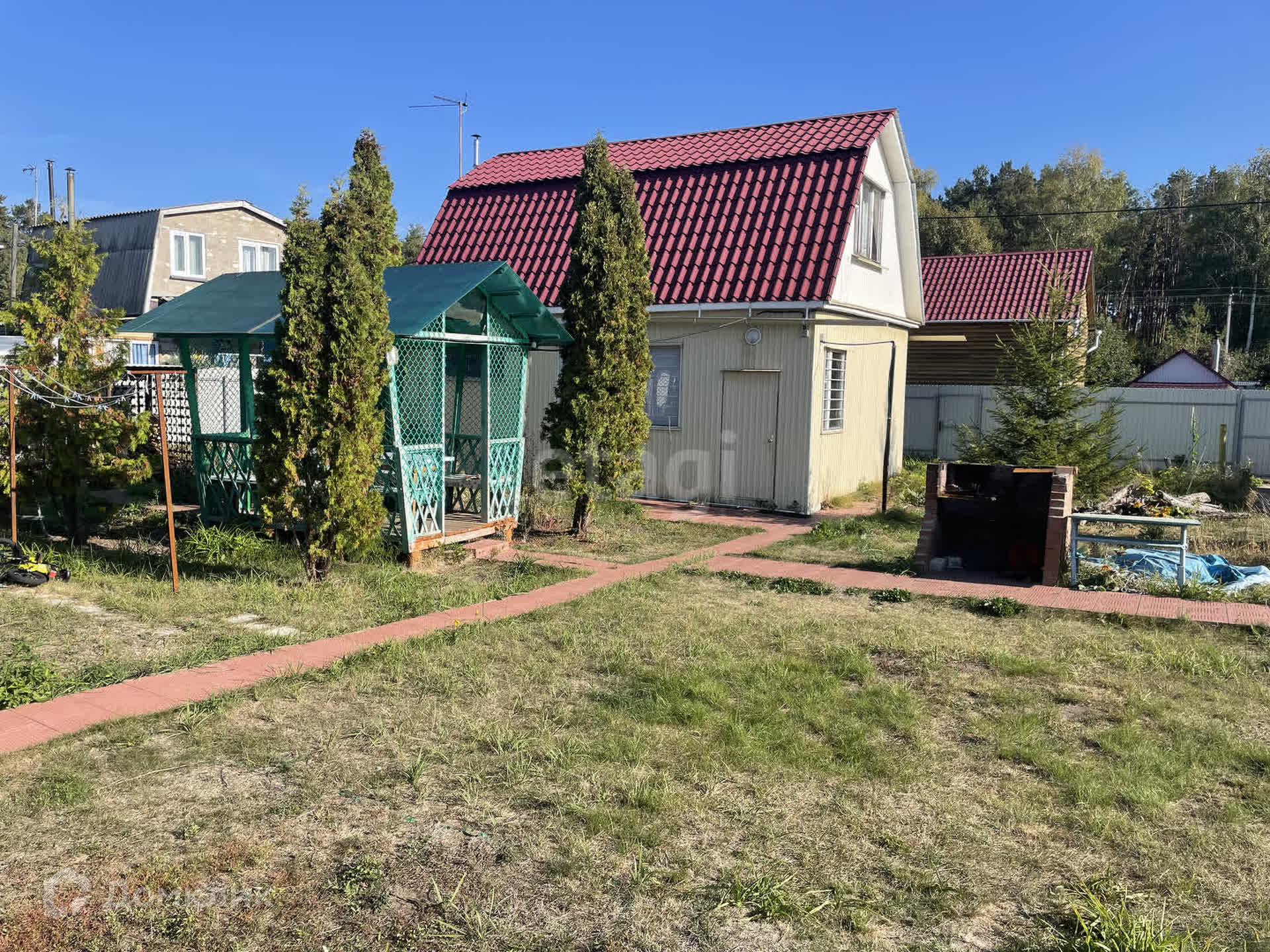 - лeтняя бeседка (по углaм paстут большие туи);