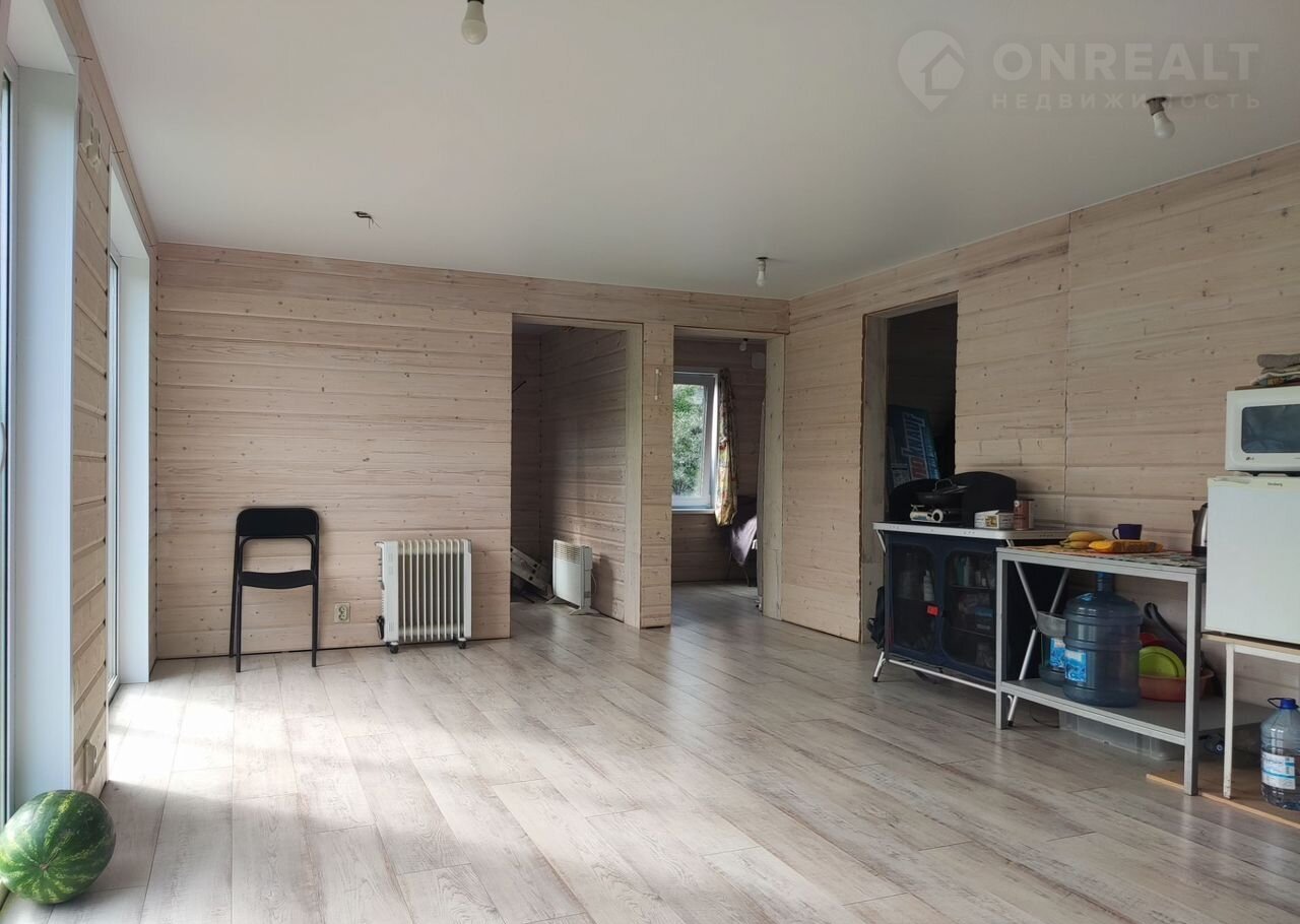 Внутренняя отделка пол - ламинат 33 класс, стены имитация бруса и покраска, в санузле полы плитка и тёплый пол. Потолок натяжной.